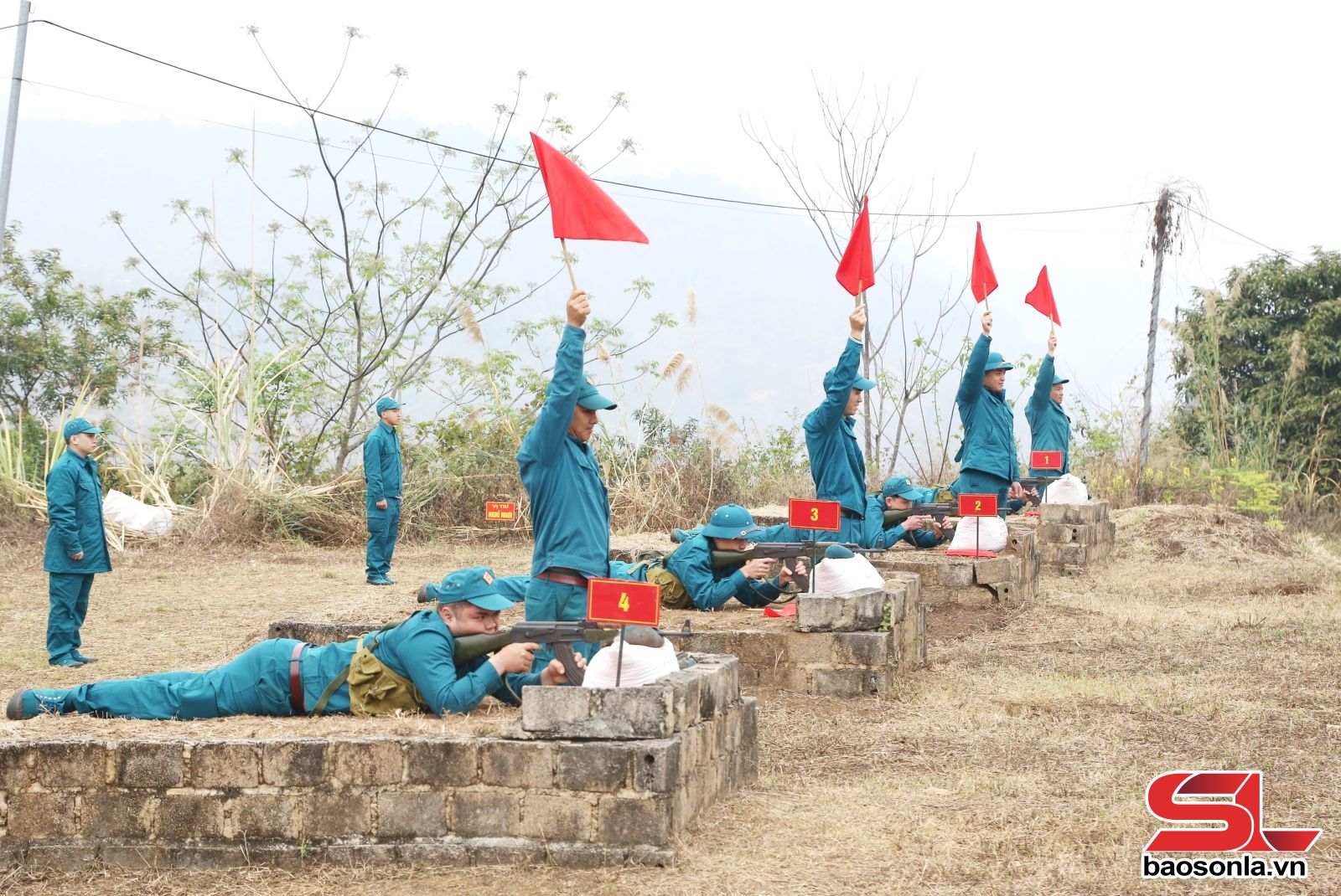 Diễn tập khu vực phòng thủ là nhiệm vụ quan trọng đối với cấp ủy, chính quyền địa phương các cấp, Đảng ủy, Bộ CHQS tỉnh tham mưu Tỉnh ủy, UBND tỉnh lãnh đạo, chỉ đạo cả hệ thống chính trị vào cuộc. Năm 2025, tổ chức thành công diễn tập động viên huyện Sông Mã cũ, diễn tập phòng thủ dân sự huyện Sốp Cộp, thị xã Mộc Châu cũ; diễn tập điểm phòng thủ khu vực Ban Chỉ huy phòng thủ khu vực 3 - Mai Sơn; diễn tập ứng phó cháy rừng, ứng phó bão lũ và tìm kiếm cứu nạn tại 12 xã. Các cuộc diễn tập bảo đảm an toàn tuyệt đối về người, vũ khí, trang thiết bị, góp phần nâng cao trình độ tham mưu, chỉ huy hiệp đồng tác chiến của các lực lượng.