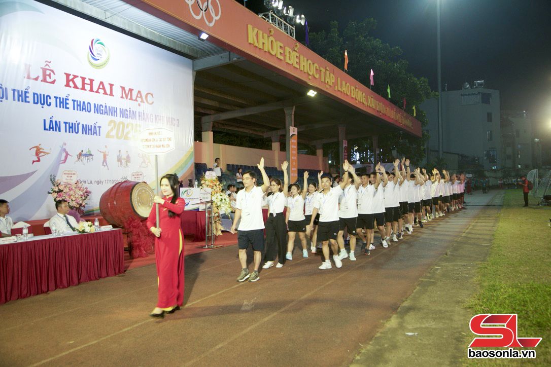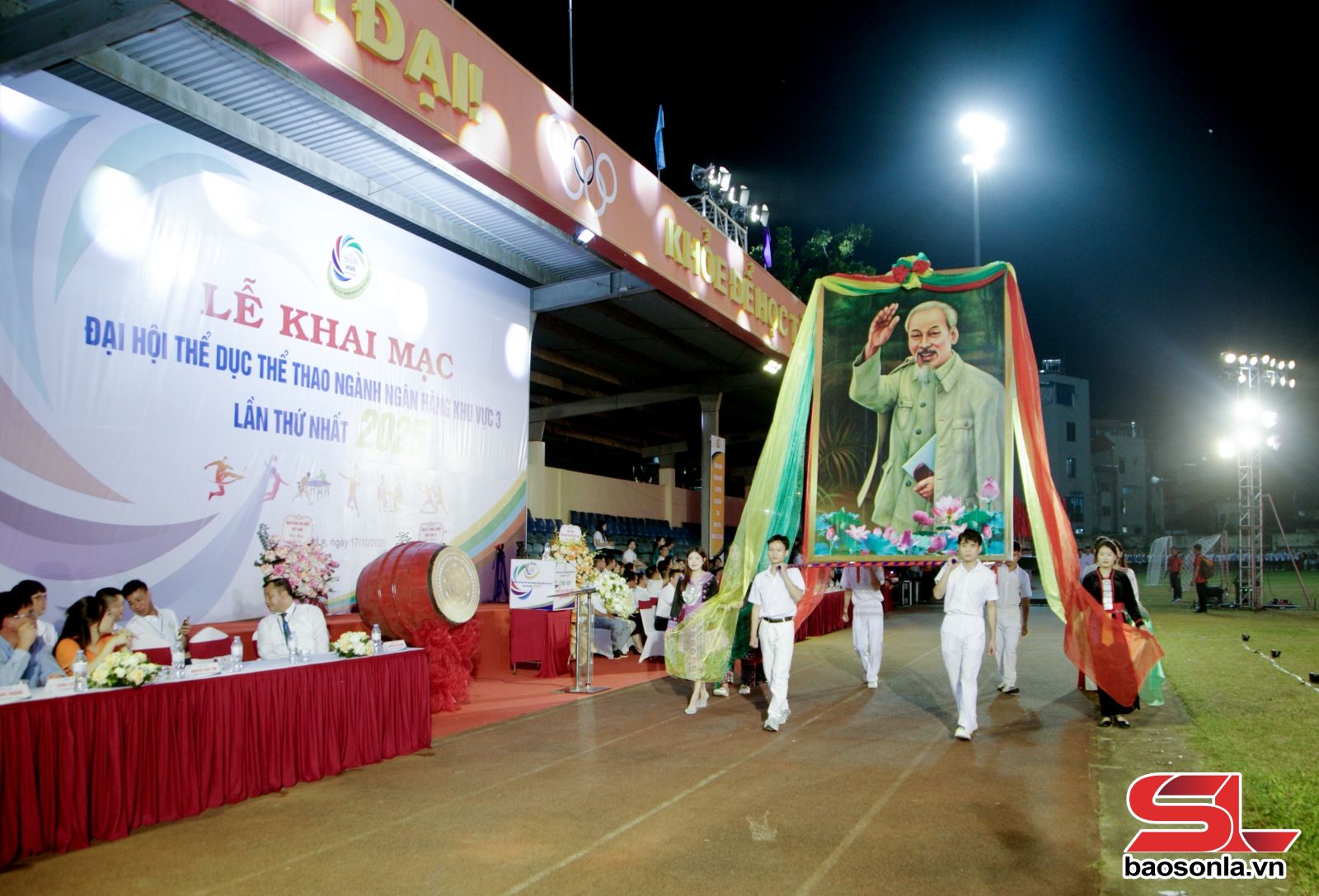 Lễ khai mạc diễn ra trang trọng với màn diễu hành biểu tượng thể thao đầy ý nghĩa: đi đầu là lá cờ đỏ sao vàng, tiếp theo là chân dung của Chủ tịch Hồ Chí Minh vĩ đại; sau chân dung Chủ tịch Hồ Chí Minh là lá cờ Đại hội Thể dục Thể thao ngành Ngân hàng Khu vực 3 Lần thứ Nhất, năm 2025 và khối hồng kỳ.