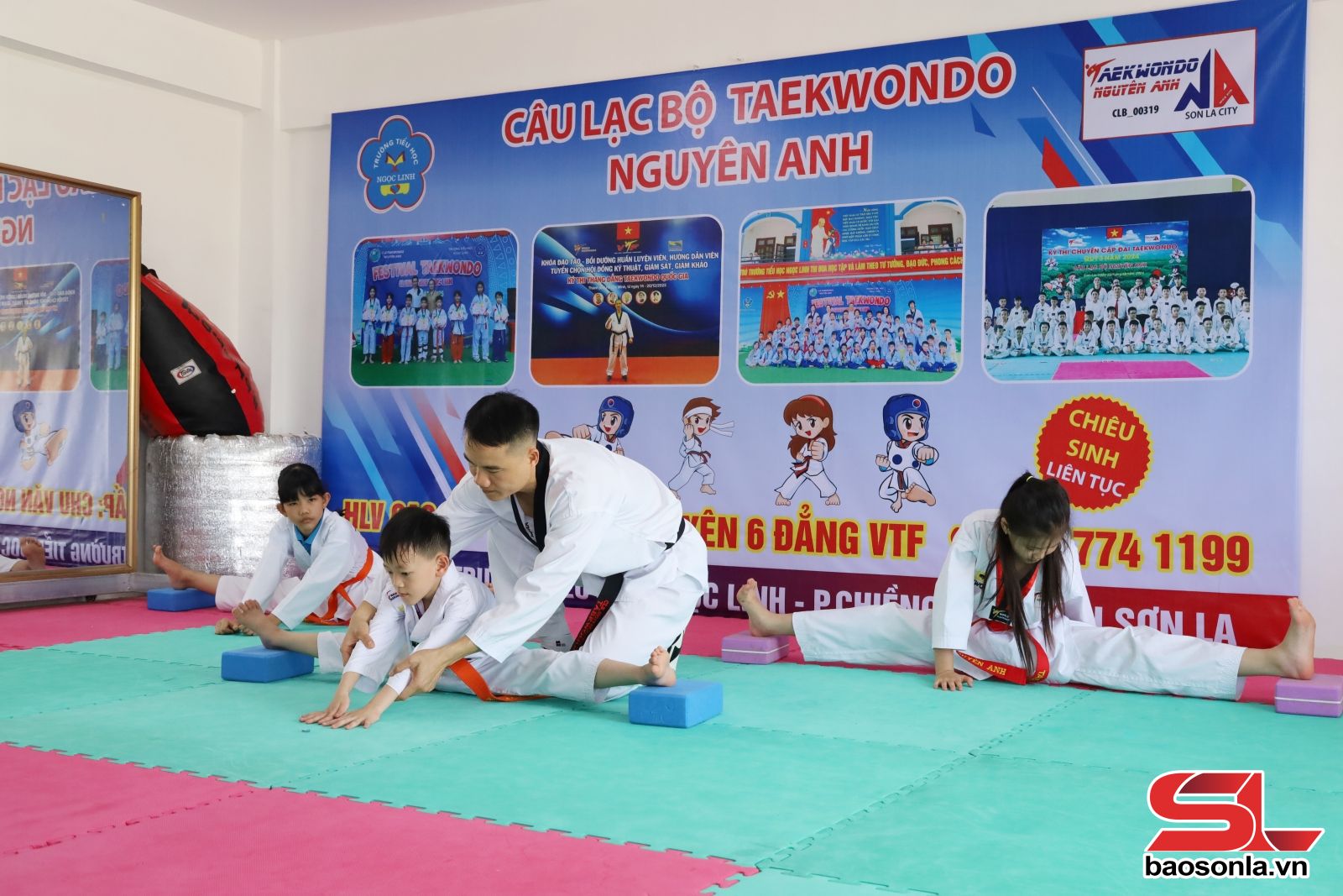 Ngoài bóng đá, nhiều môn thể thao khác cũng thu hút đông đảo thanh thiếu nhi tham gia. Trong đó, CLB Taekwondo Nguyên Anh, phường Chiềng Cơi, là địa chỉ quen thuộc của các em yêu thích võ thuật. Thành lập năm 2018, đến nay, CLB duy trì trên 150 môn sinh ở nhiều độ tuổi, luyện tập thường xuyên vào các ngày trong tuần. Tại đây, các võ sinh được hướng dẫn các thế tấn, kỹ thuật đá đặc trưng, đồng thời làm quen với các bài quyền, song đấu, đối luyện và kỹ thuật công phá. Theo quy định của Liên đoàn Taekwondo Việt Nam, sau khoảng 3 - 6 tháng tập luyện, võ sinh có thể bắt đầu tham gia thi đấu phong trào.