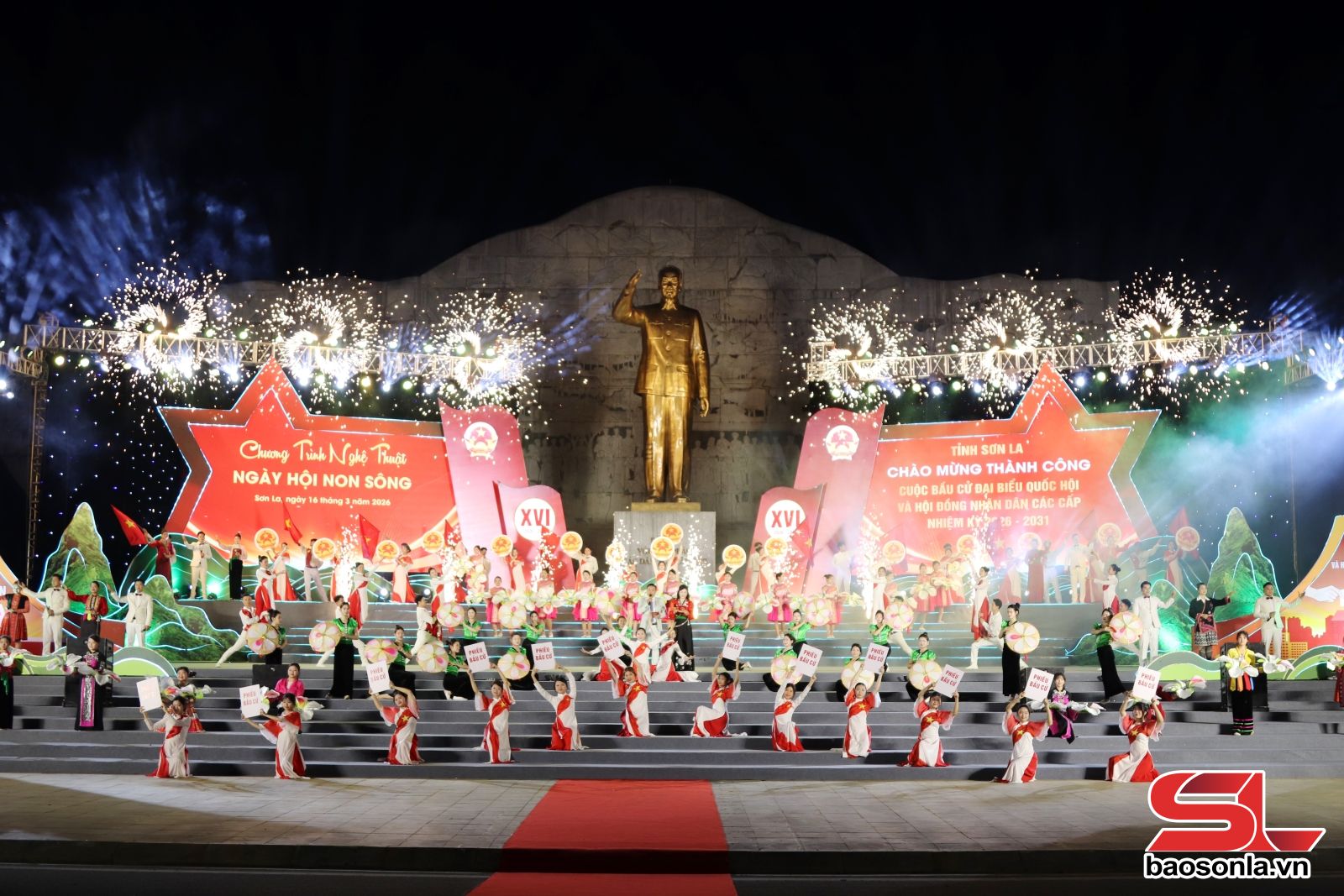 Chào mừng thành công Cuộc bầu cử đại biểu Quốc hội khóa XVI và đại biểu HĐND các cấp nhiệm kỳ 2026-2031, tối 16/3, tại Quảng trường Tây Bắc đã diễn ra chương trình nghệ thuật Ngày hội non sông trong không khí tưng bừng, phấn khởi. Chương trình được truyền hình trực tiếp trên kênh STV và livestream trên các nền tảng số của Báo và phát thanh, truyền hình Sơn La.