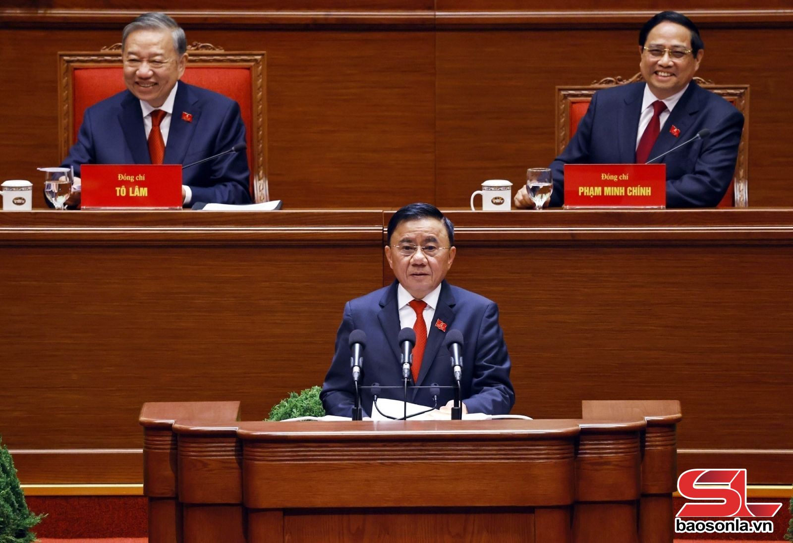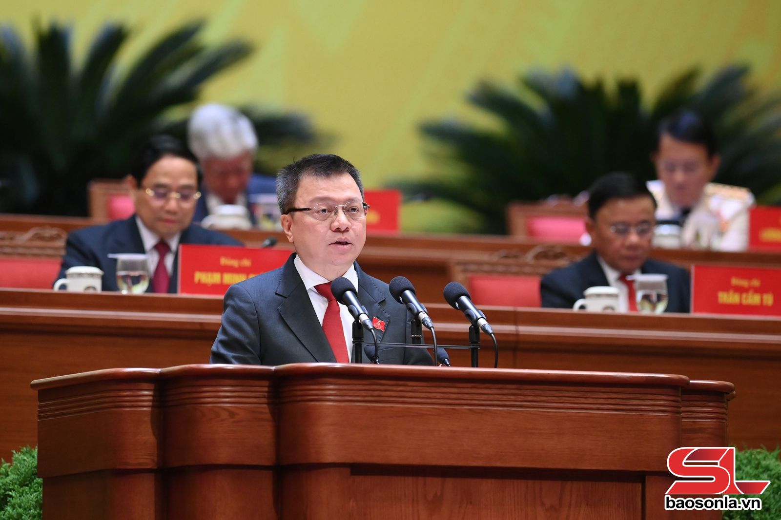Đồng chí Trần Thanh Mẫn, Ủy viên Bộ Chính trị, Chủ tịch Quốc hội thay mặt Đoàn Chủ tịch báo cáo kết quả bầu Bộ Chính trị, Tổng Bí thư, Ban Bí thư, Ủy ban Kiểm tra Trung ương, Chủ nhiệm Ủy ban Kiểm tra Trung ương khóa XIV.