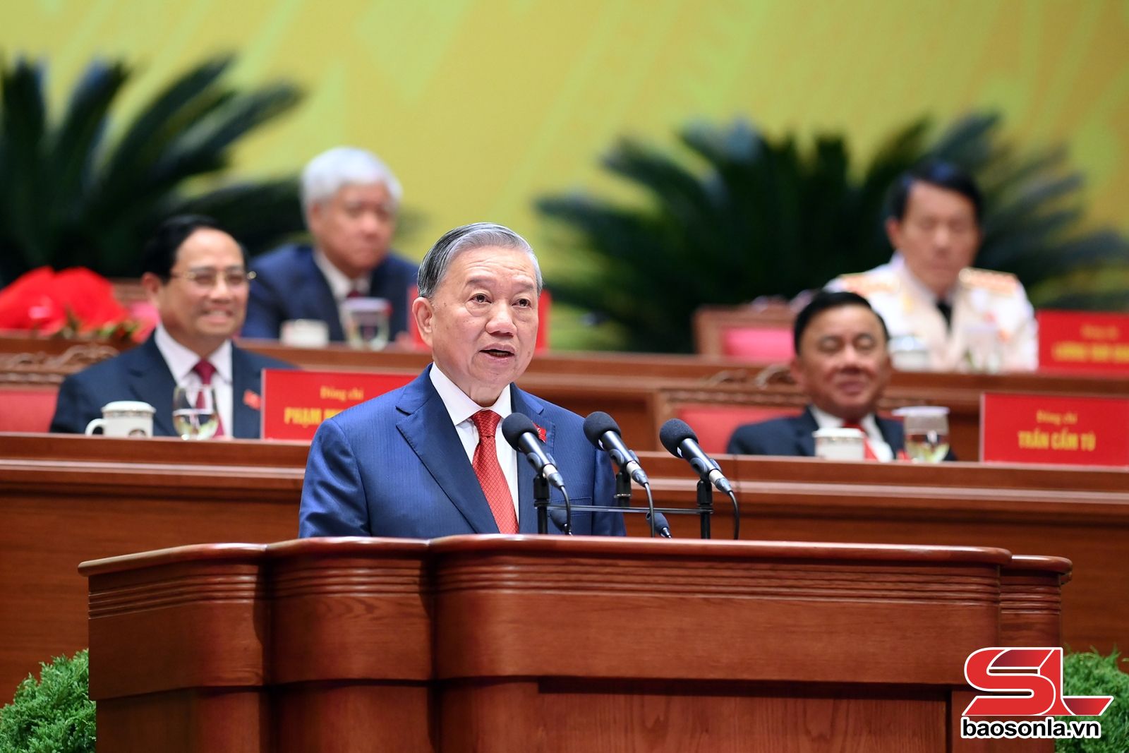 Thay mặt Ban Chấp hành Trung ương khóa XIV, Tổng Bí thư Tô Lâm cảm ơn sâu sắc sự tin tưởng và tín nhiệm của Đại hội. Tổng Bí thư nhấn mạnh, đây là vinh dự và trách nhiệm lớn trước Đảng, trước nhân dân, đồng thời biểu thị quyết tâm nỗ lực hết mình, toàn tâm, toàn lực để phục vụ sự nghiệp cao cả của Đảng, của cách mạng, của nhân dân; nguyện tuyệt đối trung thành với mục tiêu, lý tưởng của Đảng; đặt lợi ích quốc gia, dân tộc lên trên hết, trước hết; giữ vững độc lập, tự chủ, kiên quyết bảo vệ Tổ quốc, bảo vệ nhân dân.