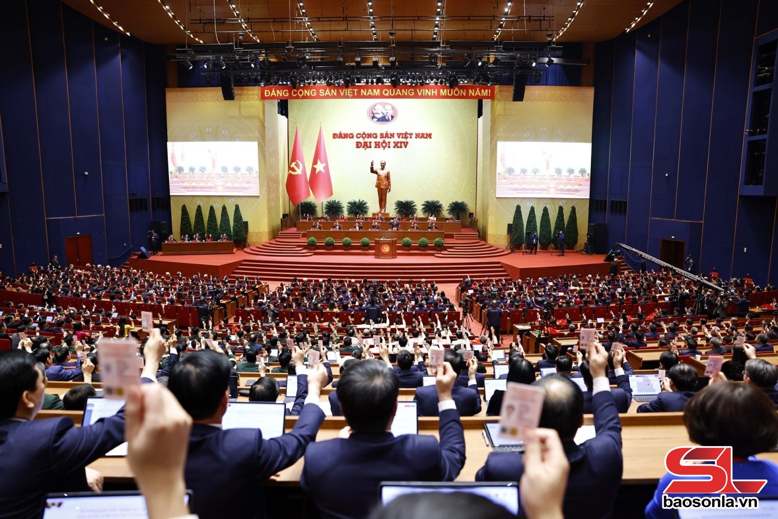 Đại hội đã biểu quyết với 100% đại biểu đồng ý thông qua Nghị quyết Đại hội đại biểu toàn quốc lần thứ XIV của Đảng.