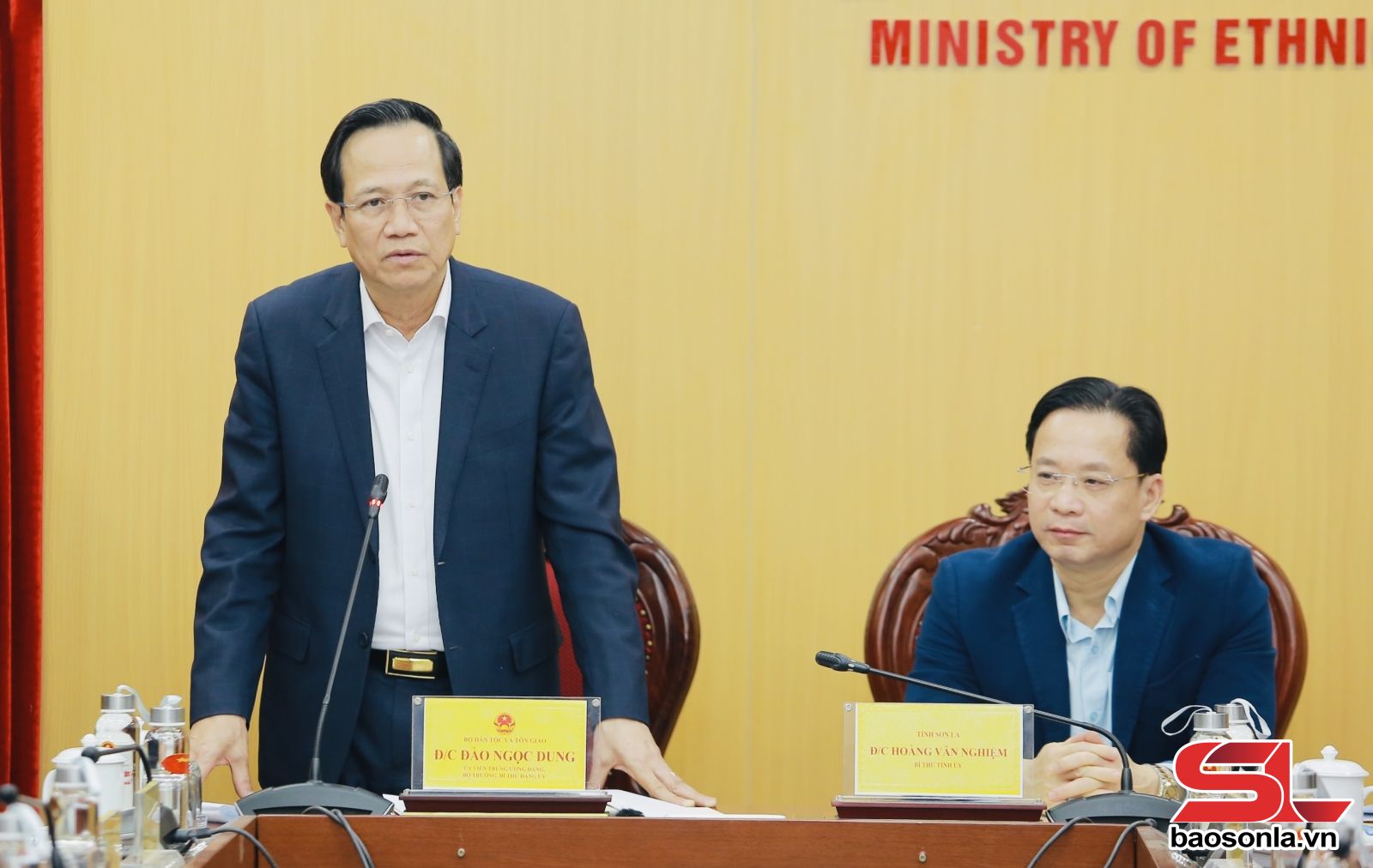 Phát biểu tại cuộc làm việc, đồng chí Đào Ngọc Dung, Bộ trưởng Bộ Dân tộc và Tôn giáo ghi nhận những nỗ lực của tỉnh Sơn La trong phát triển kinh tế - xã hội, đảm bảo quốc phòng, an ninh; đặc biệt là việc thực hiện Chương trình mục tiêu quốc gia 1719. Cơ sở hạ tầng được quan tâm đầu tư phát triển; chuyển đổi cơ cấu kinh tế có những chuyển biến mạnh mẽ, đặc biệt là sản xuất nông nghiệp công nghệ cao gắn với du lịch cộng đồng; tư duy nhận thức, chất lượng nguồn nhân lực nâng lên rõ rệt...