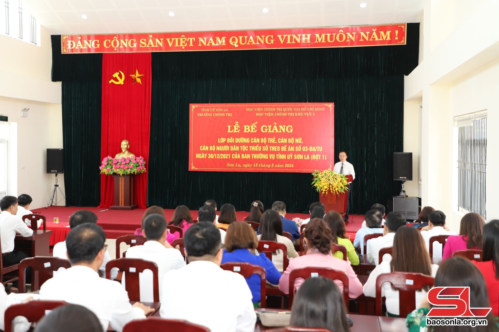 Ngày 15/5, Trường Chính trị tỉnh phối hợp với Học viện Chính trị khu vực I, Học viện Chính trị quốc gia Hồ Chí Minh tổ chức bế giảng lớp bồi dưỡng cán bộ trẻ, cán bộ nữ, cán bộ người dân tộc thiểu số theo Đề án số 03-ĐA/TU ngày 30/12/2021 của Ban Thường vụ Tỉnh ủy (đợt I).