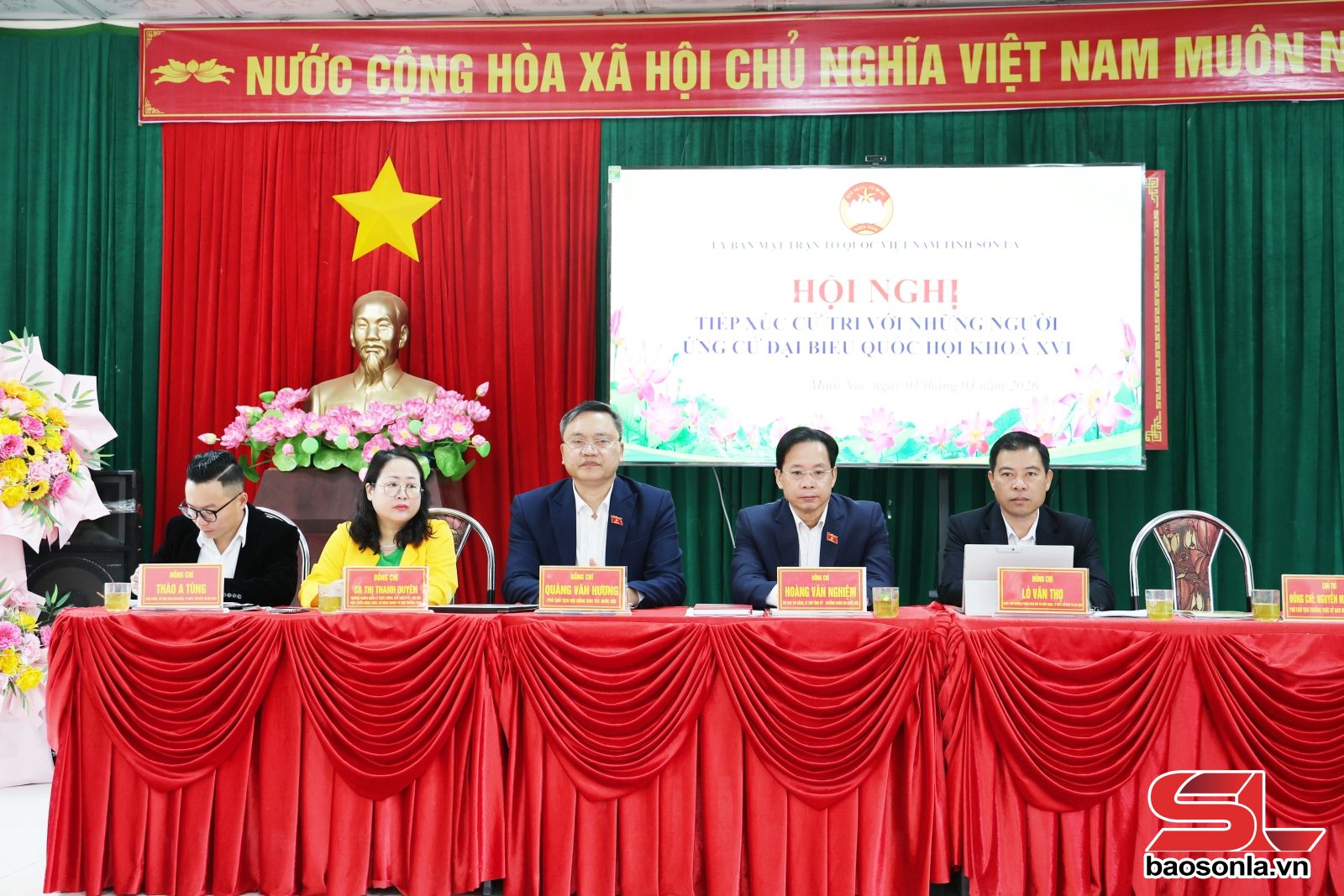 Tại hội nghị, đại diện Ủy ban MTTQ Việt Nam tỉnh đã thông tin tới cử tri danh sách, tiểu sử tóm tắt của 5 người ứng cử đại biểu Quốc hội khóa XVI, gồm các đồng chí: Hoàng Văn Nghiệm, Uỷ viên Ban Chấp hành Trung ương Đảng, Bí thư Tỉnh uỷ, Trưởng Đoàn đại biểu Quốc hội tỉnh; Quàng Văn Hương, Phó Chủ tịch Hội đồng dân tộc của Quốc hội; Lò Văn Thọ, Nghệ sĩ ưu tú, Phó Trưởng phòng Nhà hát ca múa nhạc, Trung tâm Văn hoá - Thể thao, Sở Văn hoá, Thể thao và Du lịch; Sa Thị Thanh Duyên, Trưởng phòng Quản lý chất lượng, chế biến, phát triển thị trường, Chi cục Phát triển nông thôn, Sở Nông nghiệp và Môi trường; Thào A Tùng, viên chức, Ủy viên Ban Chấp hành Chi đoàn Trung tâm Văn hóa - Thể thao, Sở Văn hoá, Thể thao và Du lịch.