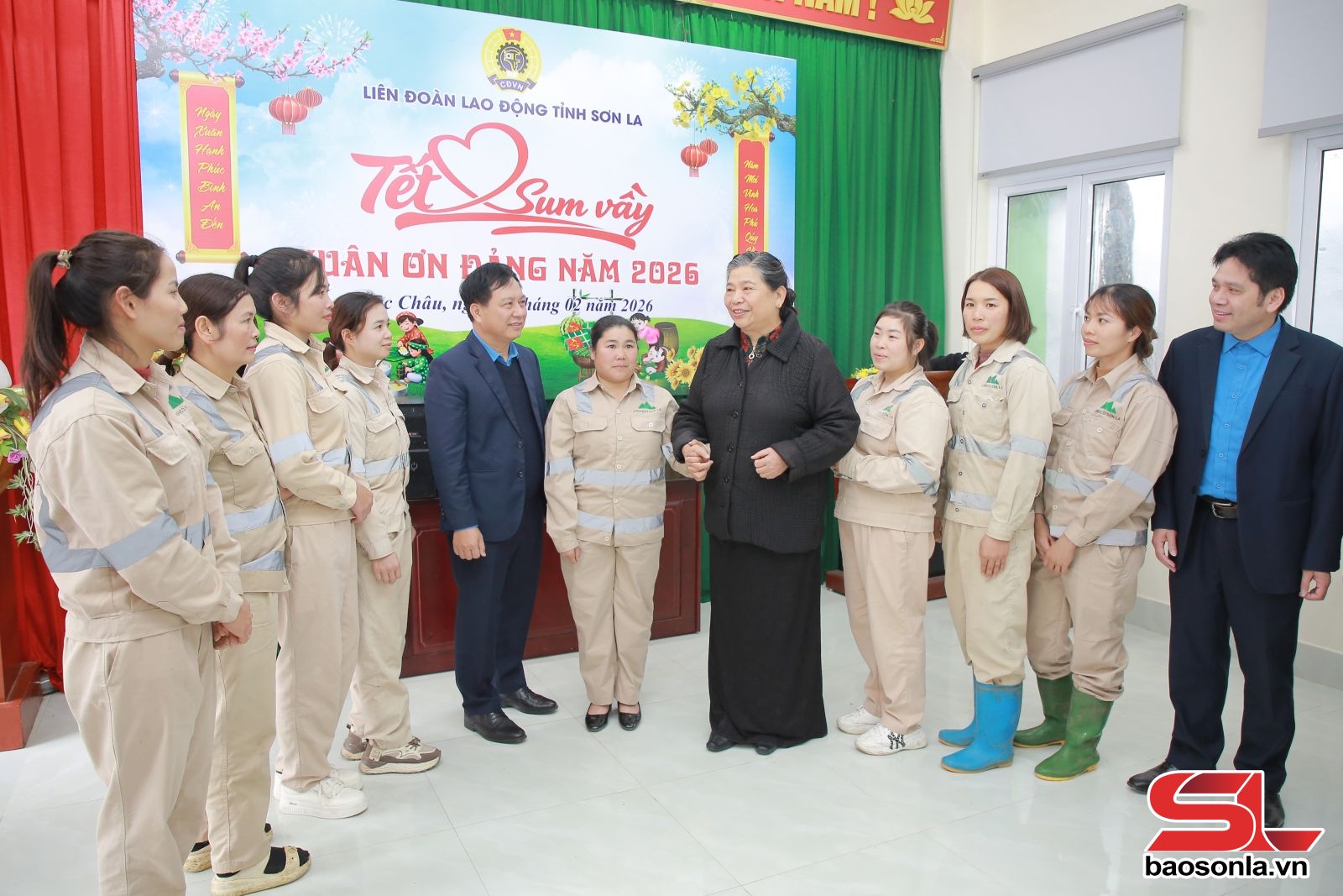 Ngày 8/2, đồng chí Tòng Thị Phóng, nguyên Ủy viên Bộ Chính trị, nguyên Phó Chủ tịch Thường trực Quốc hội, cùng lãnh đạo Tổng Liên đoàn Lao động Việt Nam đã dự và trao quà cho đoàn viên, người lao động Chi nhánh Đô thị Mộc Châu - Công ty Cổ phần Môi trường và Dịch vụ đô thị Sơn La, trong khuôn khổ Chương trình “Tết Sum vầy - Xuân ơn Đảng” năm 2026 do Liên đoàn Lao động tỉnh Sơn La tổ chức.