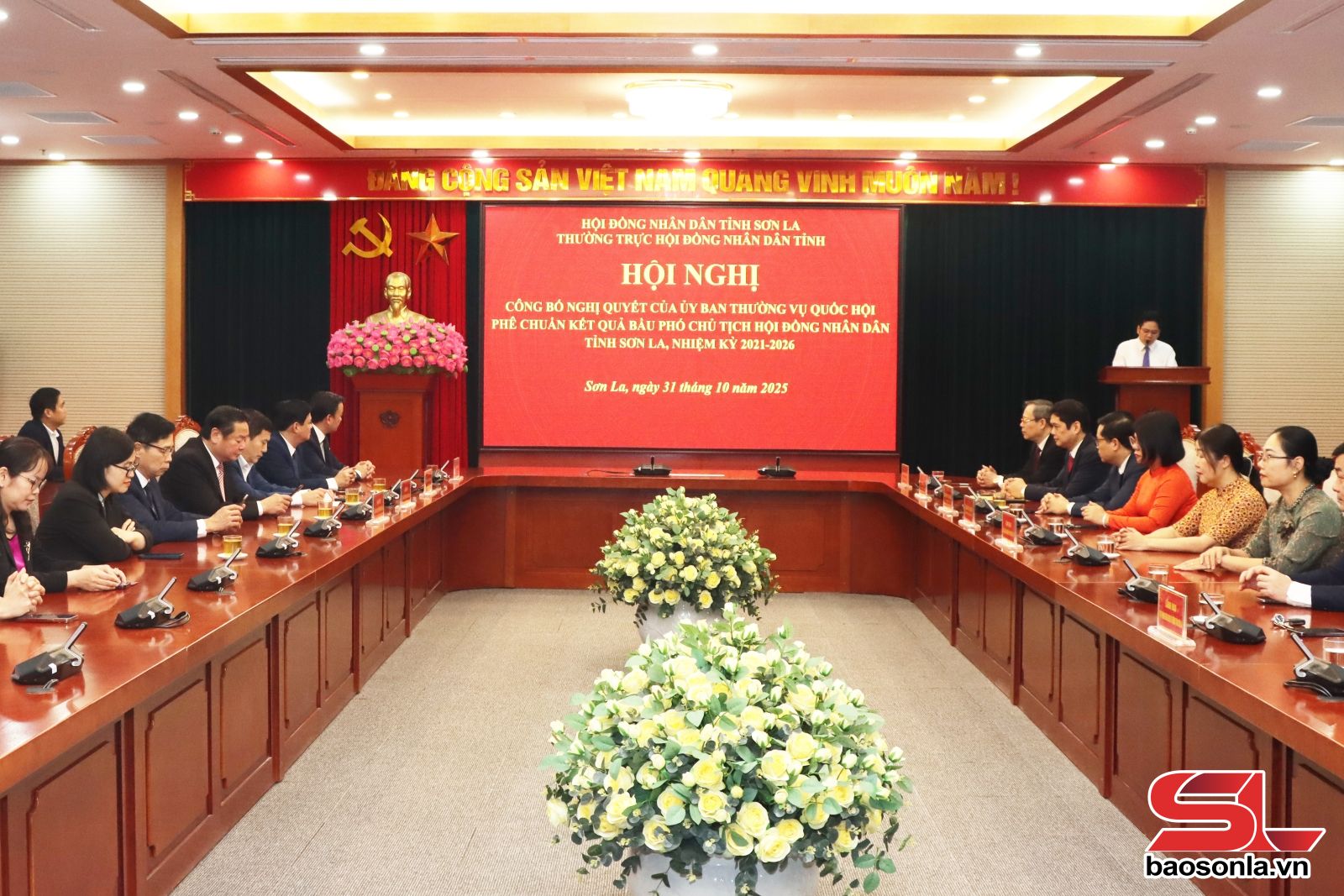 Ngày 31/10, Thường trực HĐND tỉnh đã tổ chức Hội nghị công bố Nghị quyết của Ủy Ban Thường vụ Quốc hội phê chuẩn kết quả bầu Phó Chủ tịch HĐND tỉnh Sơn La nhiệm kỳ 2021-2026.