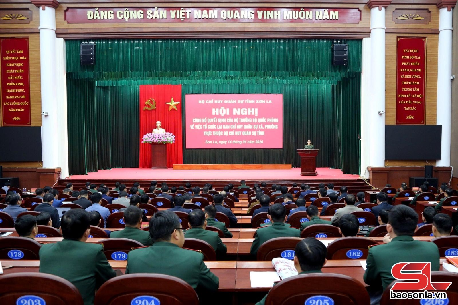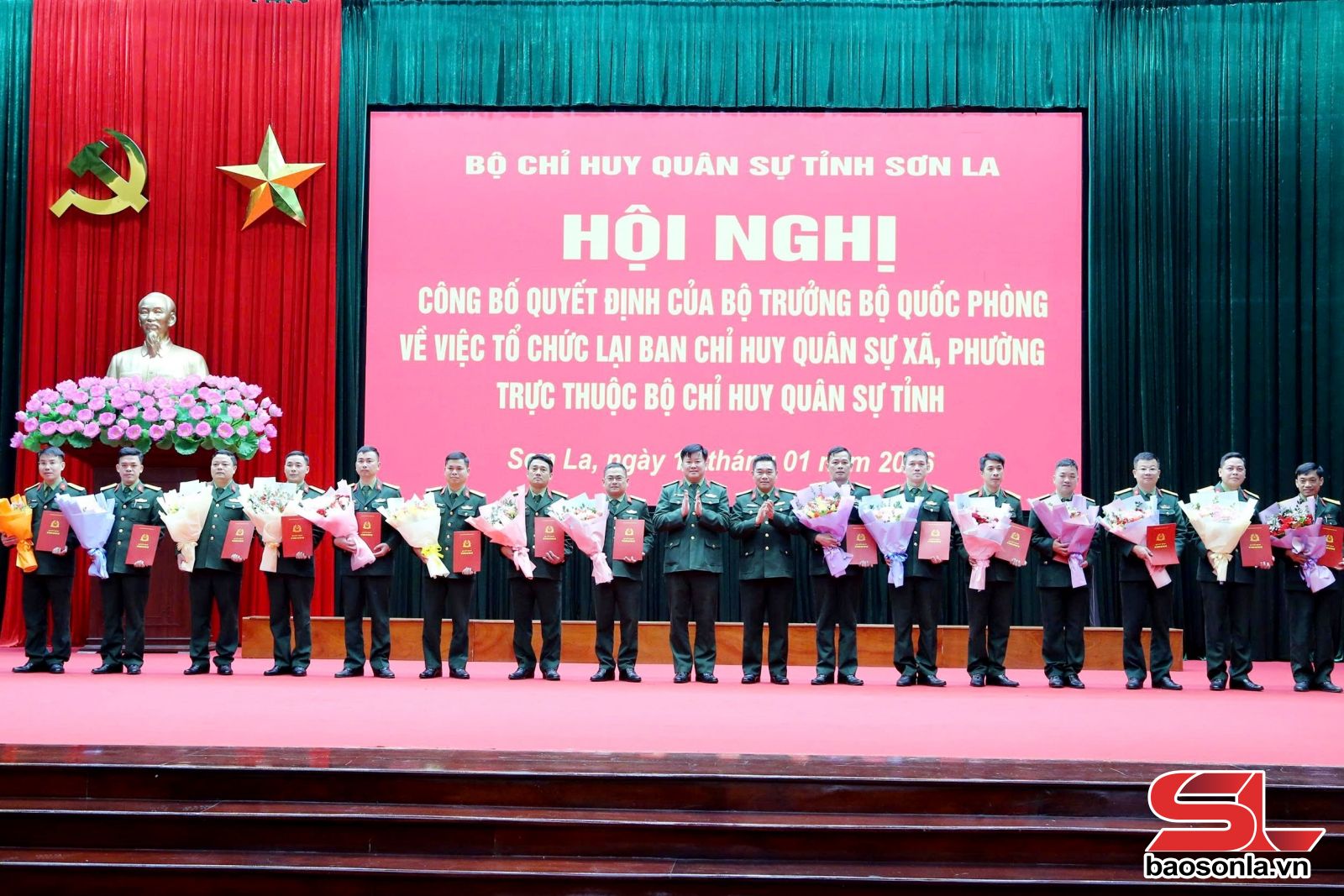 Hội nghị đã công bố Quyết định của Bộ trưởng Bộ Quốc phòng và Quyết định của Tổng Tham mưu trưởng Quân đội nhân dân Việt Nam về tổ chức lại và ban hành biểu tổ chức, biên chế Ban CHQS xã, phường trực thuộc Bộ CHQS tỉnh; Quyết định của Quân khu 2 về việc điều động, bổ nhiệm cán bộ giữ chức vụ Chỉ huy trưởng Ban CHQS các xã, phường trên địa bàn tỉnh Sơn La. Theo đó, có 75 cán bộ thuộc Bộ CHQS tỉnh được Quân khu 2 điều động, bổ nhiệm giữ chức vụ Chỉ huy trưởng Ban CHQS các xã, phường trực thuộc Bộ CHQS tỉnh Sơn La. Đây là những cán bộ có đủ phẩm chất chính trị, đạo đức, trình độ năng lực, đáp ứng yêu cầu nhiệm vụ mới.