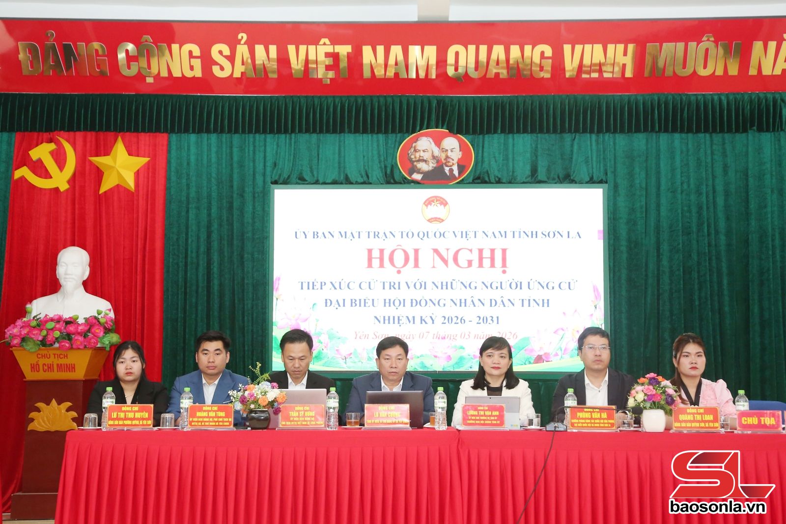7 ứng cử viên đại biểu HĐND tỉnh khóa XVI tại đơn vị bầu cử số 10, gồm các đồng chí: Lường Thị Vân Anh, Ủy viên Ban Thường vụ Tỉnh ủy, Trưởng ban Nội chính Tỉnh ủy; Lù Văn Cường, Tỉnh ủy viên, Bí thư Đảng ủy, Chủ tịch HĐND xã Yên Châu; Phùng Văn Hà, Trưởng phòng Công tác Quốc hội, Văn phòng Đoàn đại biểu Quốc hội và HĐND tỉnh Sơn La; Trần Sỹ Hứng, Chủ tịch Ủy ban MTTQ Việt Nam xã Lóng Phiêng; Hoàng Văn Tùng, Phó Chủ tịch Ủy ban MTTQ Việt Nam xã, Bí thư Đoàn xã Yên Châu; Quàng Thị Loan, bản Quỳnh Sơn, xã Yên Sơn; Lừ Thị Thu Huyền, bản Phương Quỳnh, xã Yên Sơn.
