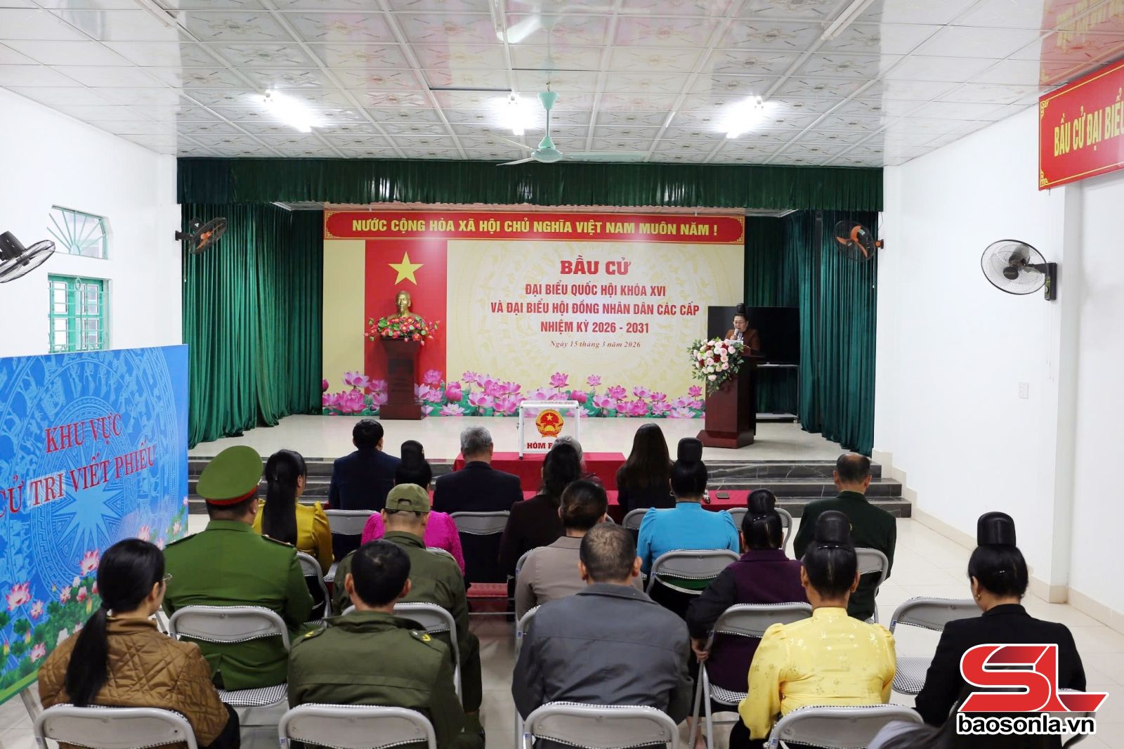 Khu vực bỏ phiếu số 1, bản Buổn, phường Chiềng Cơi có 506 cử tri tham gia, tiến hành bỏ phiếu lựa chọn 3 đại biểu Quốc hội, 5 đại biểu HĐND tỉnh, và 3 đại biểu HĐND phường. Từ rất sớm Cử tri các độ tuổi đã có mặt đông đủ thực hiện quyền công dân, thể hiện sự tin tưởng, kỳ vọng vào những người đại biểu được lựa chọn sẽ đóng góp tích cực cho sự phát triển của địa phương.