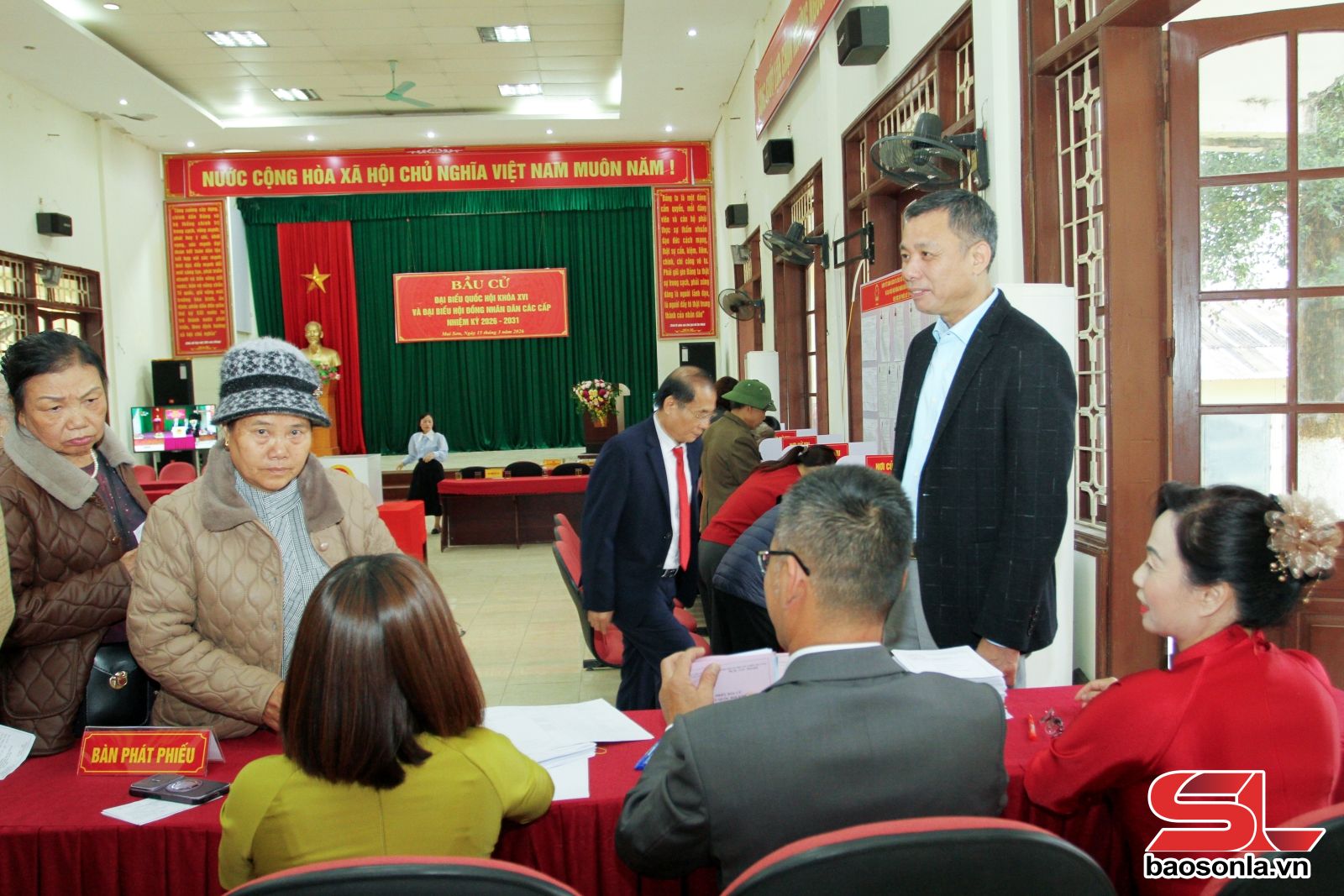 Sau khi hoàn thành thực hiện quyền và nghĩa vụ công dân, đồng chí đã đi kiểm tra và chỉ đạo công tác bầu cử tại xã Mai Sơn, xã Nà Bó và xã Chiềng Sung.