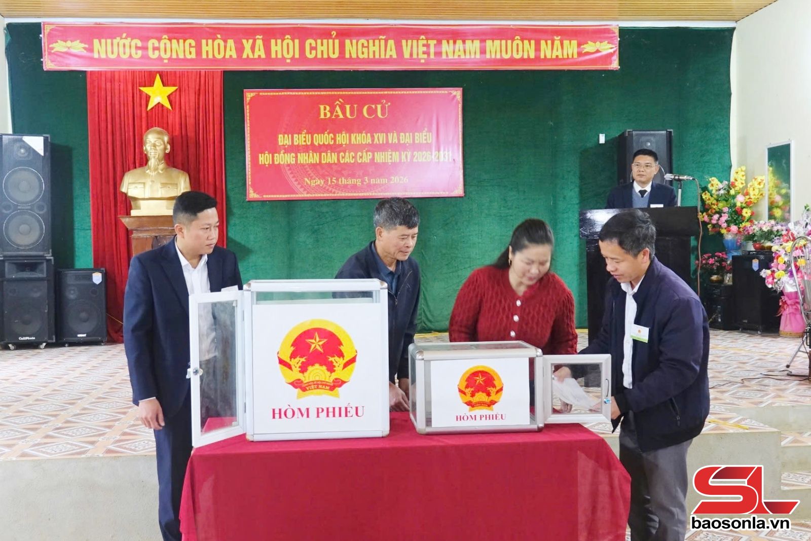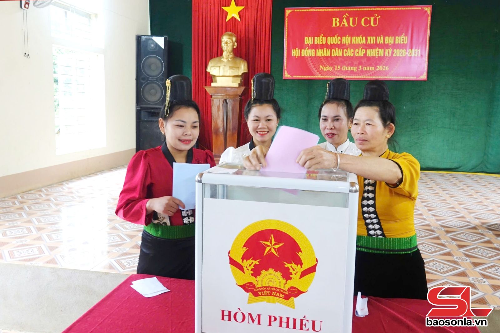 Trong không khí phấn khởi của ngày hội non sông, cử tri xuất trình thẻ cử tri, nhận phiếu bầu đại biểu Quốc hội và đại biểu HĐND các cấp, vào khu vực viết phiếu kín và trực tiếp bỏ phiếu vào hòm phiếu dưới sự chứng kiến của Tổ bầu cử và cử tri.