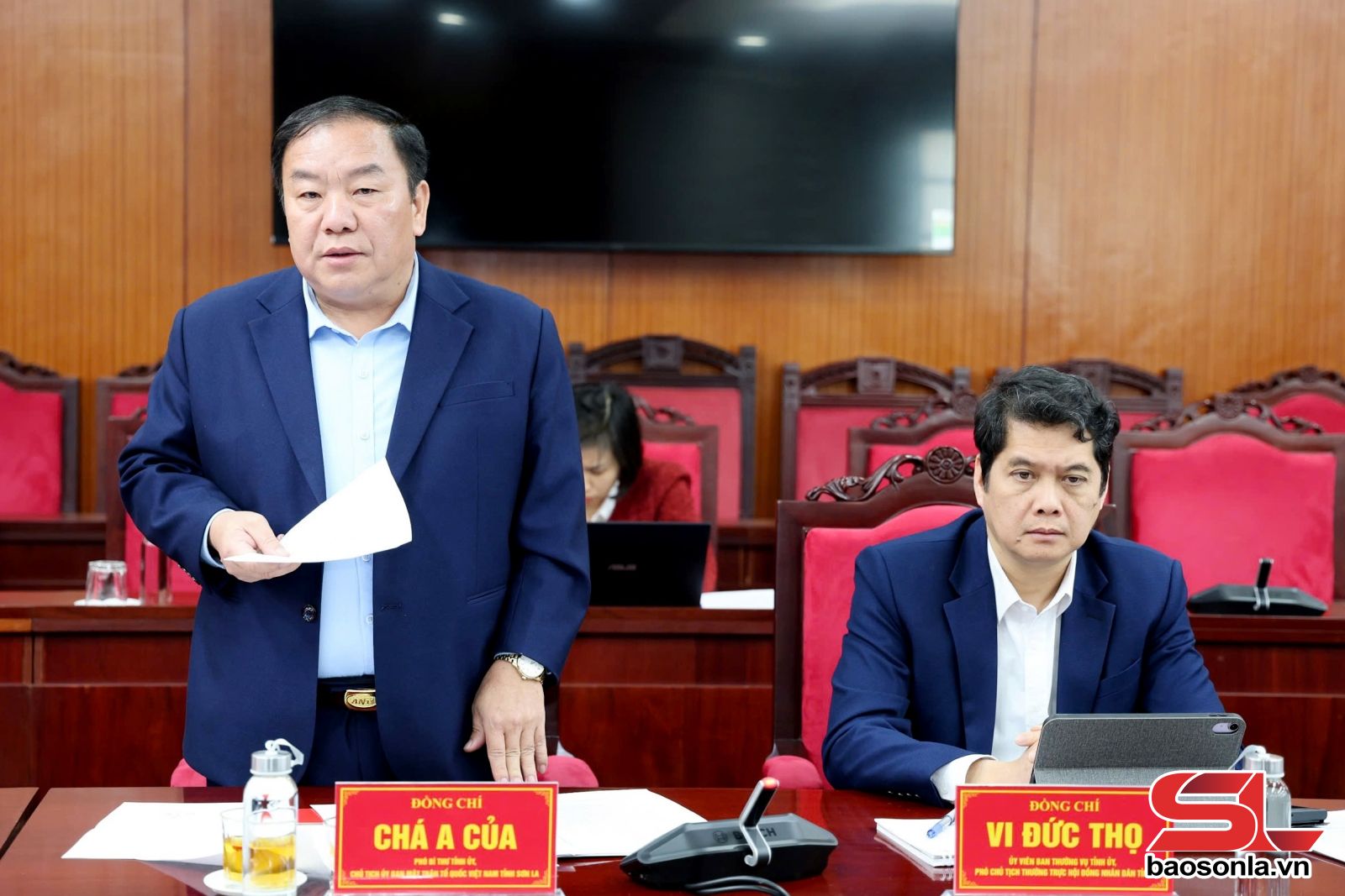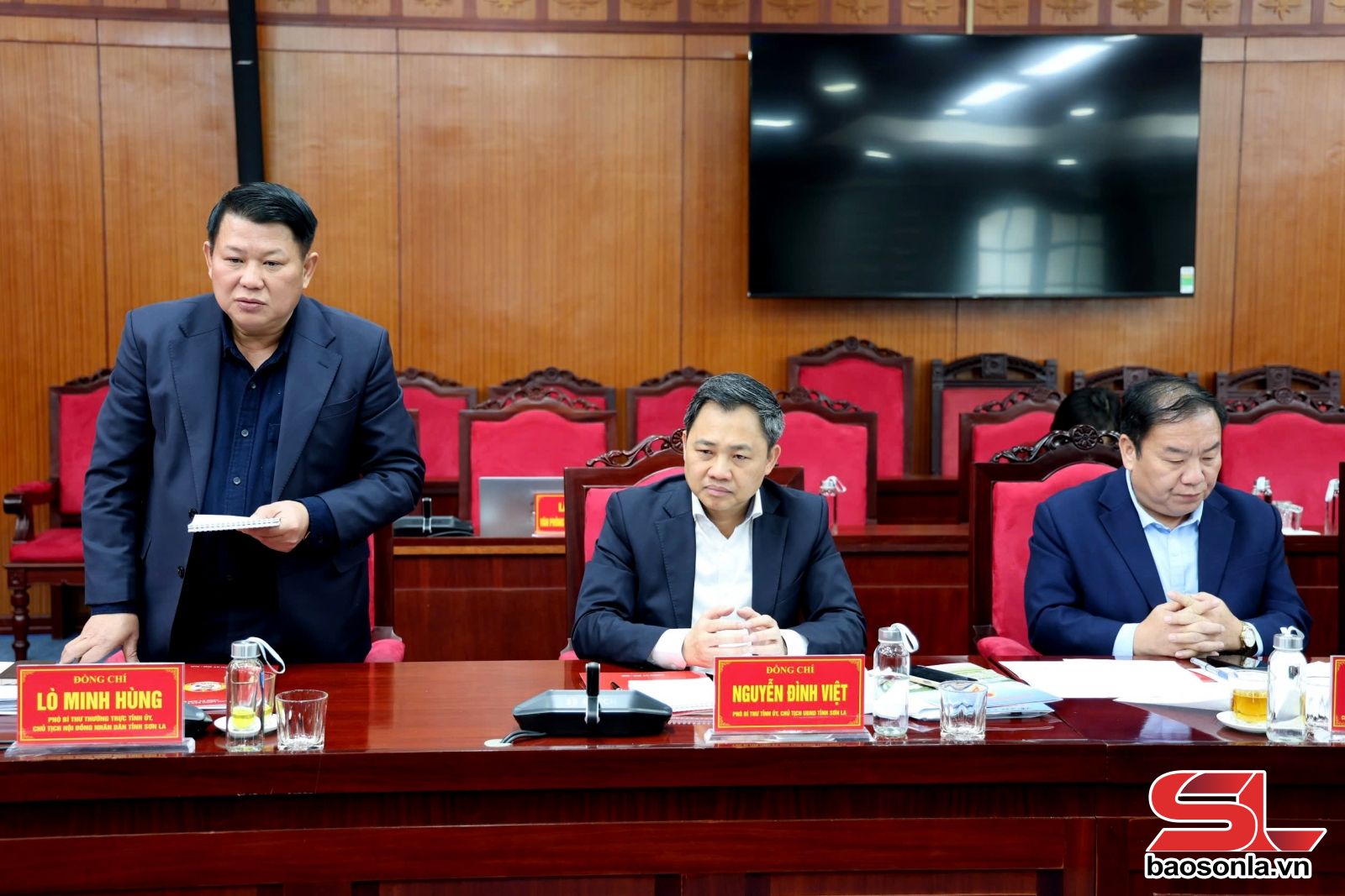 Đón và làm việc với Đoàn, tỉnh Sơn La có các đồng chí: Hoàng Văn Nghiệm, Bí thư Tỉnh ủy, Trưởng Đoàn đại biểu Quốc hội tỉnh; Lò Minh Hùng, Phó Bí thư Thường trực Tỉnh ủy, Chủ tịch HĐND tỉnh; Nguyễn Đình Việt, Phó Bí thư Tỉnh ủy, Chủ tịch UBND tỉnh; Chá A Của, Phó Bí thư Tỉnh ủy, Chủ tịch Ủy ban MTTQ Việt Nam tỉnh; các đồng chí Ủy viên Ban Thường vụ Tỉnh ủy; Thường trực HĐND, UBND tỉnh; lãnh đạo các sở, ngành của tỉnh.