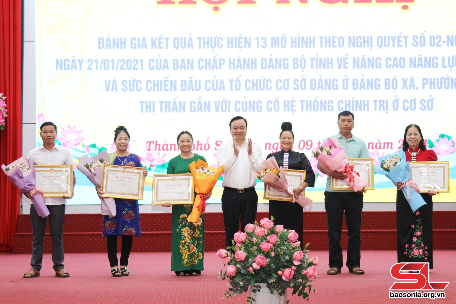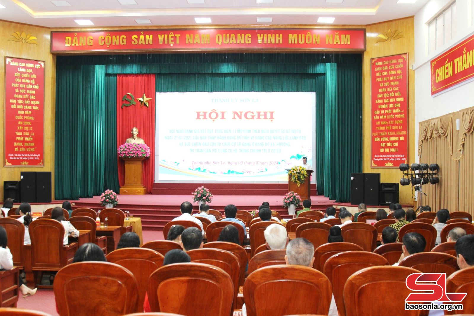 Đảng bộ thành phố có 54 chi bộ, đảng bộ cơ sở, 259 chi bộ trực thuộc Đảng bộ cơ sở. Thực hiện Nghị quyết số 02 của Ban Chấp hành Đảng bộ tỉnh, trong 3 năm qua, Đảng bộ thành phố Sơn La cụ thể hóa nghị quyết bằng 13 mô hình mẫu. Trên cơ sở đó, triển khai 227 phần việc, hơn 200 công trình trên tất cả các lĩnh vực chính trị, kinh tế, xã hội, quốc phòng, an ninh, xây dựng nông thôn mới, đô thị văn minh, an sinh xã hội. Các mô hình đem lại hiệu quả thiết thực, tạo sự lan toả trong nhân dân, góp phần nâng cao đời sống vật chất, tinh thần nhân dân.