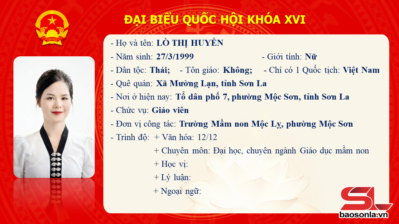 DANH SÁCH NGƯỜI TRÚNG CỬ ĐẠI BIỂU QUỐC HỘI KHÓA XVI, TỈNH SƠN LA