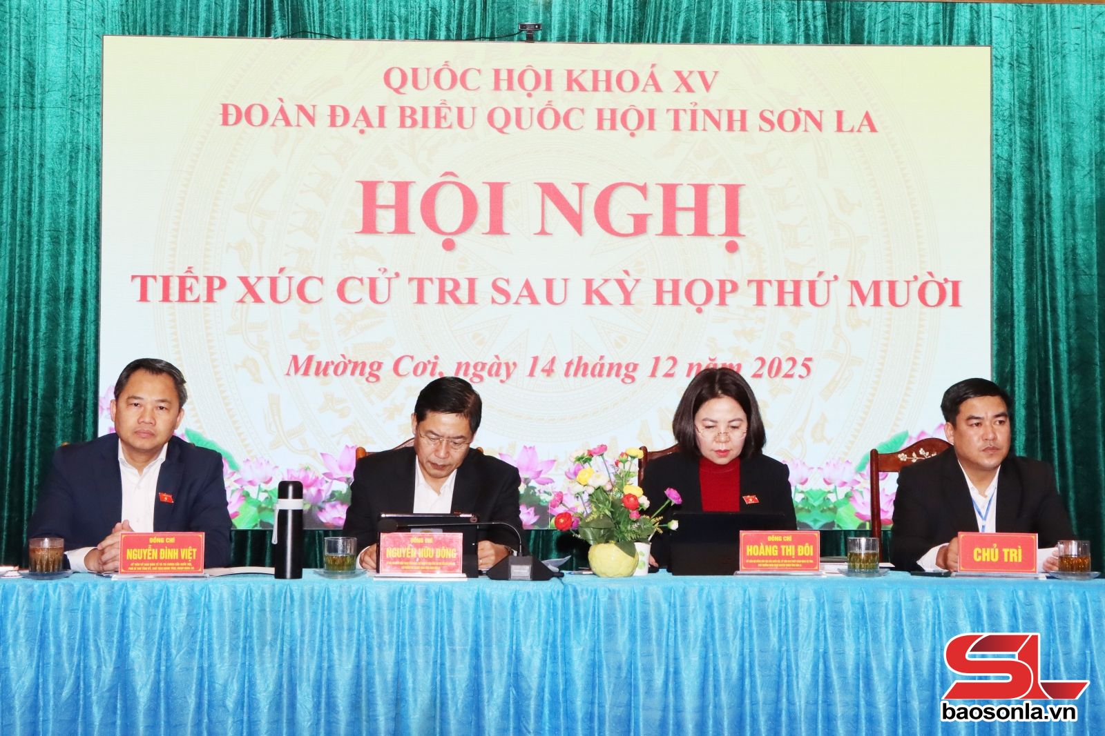 Ngày 14/12, các đồng chí: Nguyễn Hữu Đông, Ủy viên Ban Chấp hành Trung ương Đảng, Chủ nhiệm Ủy ban công tác Đại biểu Quốc hội, Phó Trưởng ban Tổ chức Trung ương; Nguyễn Đình Việt, Ủy viên Ủy ban Kinh tế và Tài chính của Quốc hội, Phó Bí thư Tỉnh ủy, Chủ tịch UBND tỉnh; Hoàng Thị Đôi, Ủy viên Hội đồng Dân tộc của Quốc hội, Phó Trưởng đoàn chuyên trách, Đoàn ĐBQH tỉnh, đã tiếp xúc cử tri sau Kỳ họp thứ mười, Quốc hội khóa XV tại xã Mường Cơi.