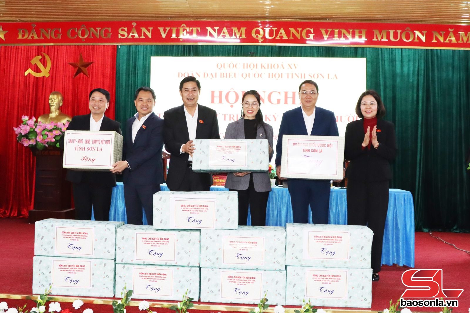 Nhân dịp này, Đoàn đại biểu Quốc hội tỉnh tặng quà xã Mường Cơi; tặng 10 suất quà cho 10 hộ gia đình người có công trên địa bàn.