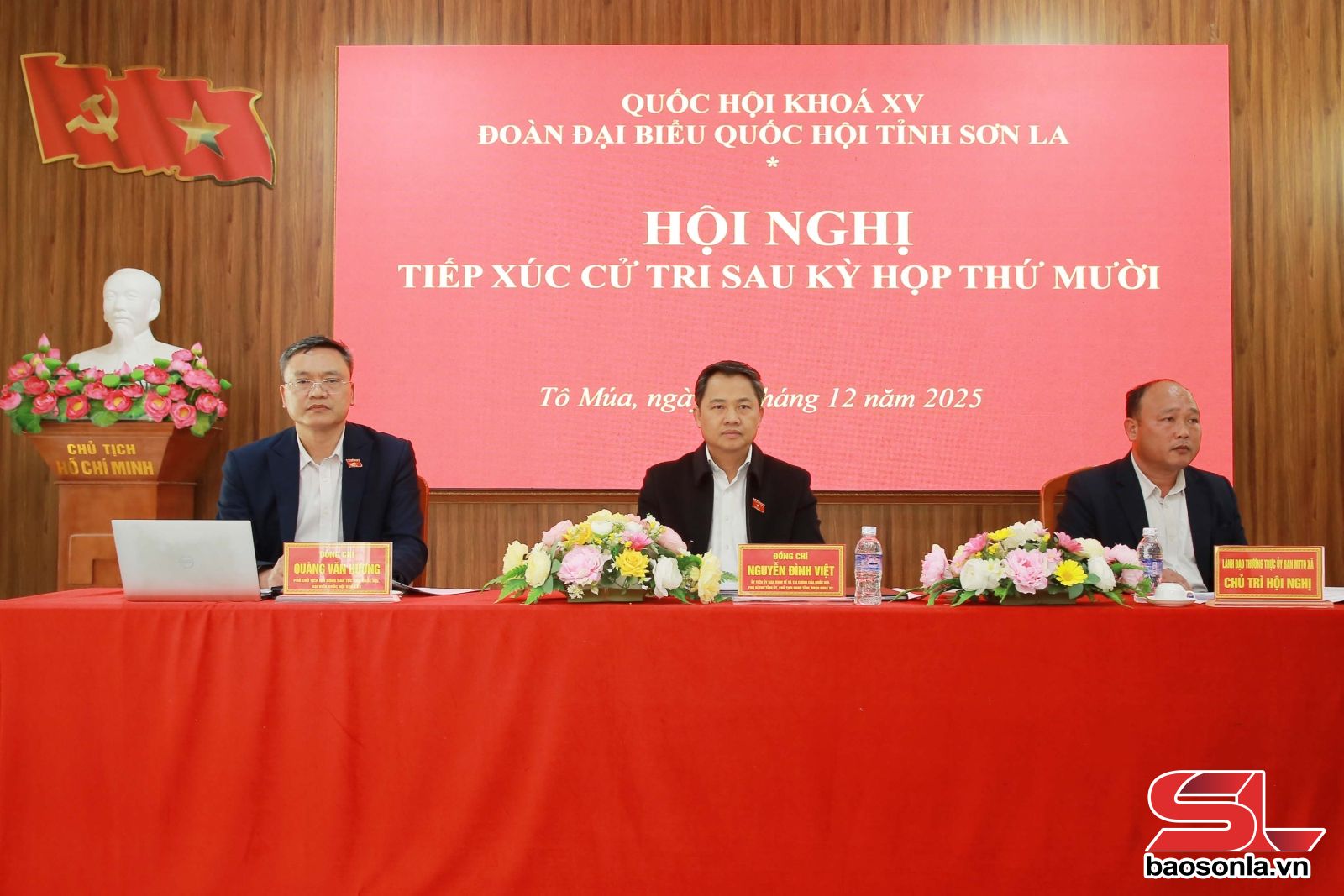Ngày 15/12, các đồng chí: Nguyễn Đình Việt, Ủy viên Ủy ban Kinh tế và Tài chính của Quốc hội, Phó Bí thư Tỉnh ủy, Chủ tịch UBND tỉnh Sơn La; Quàng Văn Hương, Phó Chủ tịch Hội đồng Dân tộc của Quốc hội đã tiếp xúc cử tri sau Kỳ họp thứ mười, Quốc hội khóa XV tại xã Tô Múa. Cùng dự có đồng chí Đặng Ngọc Hậu, Phó Chủ tịch UBND tỉnh; lãnh đạo một số sở, ngành của tỉnh.