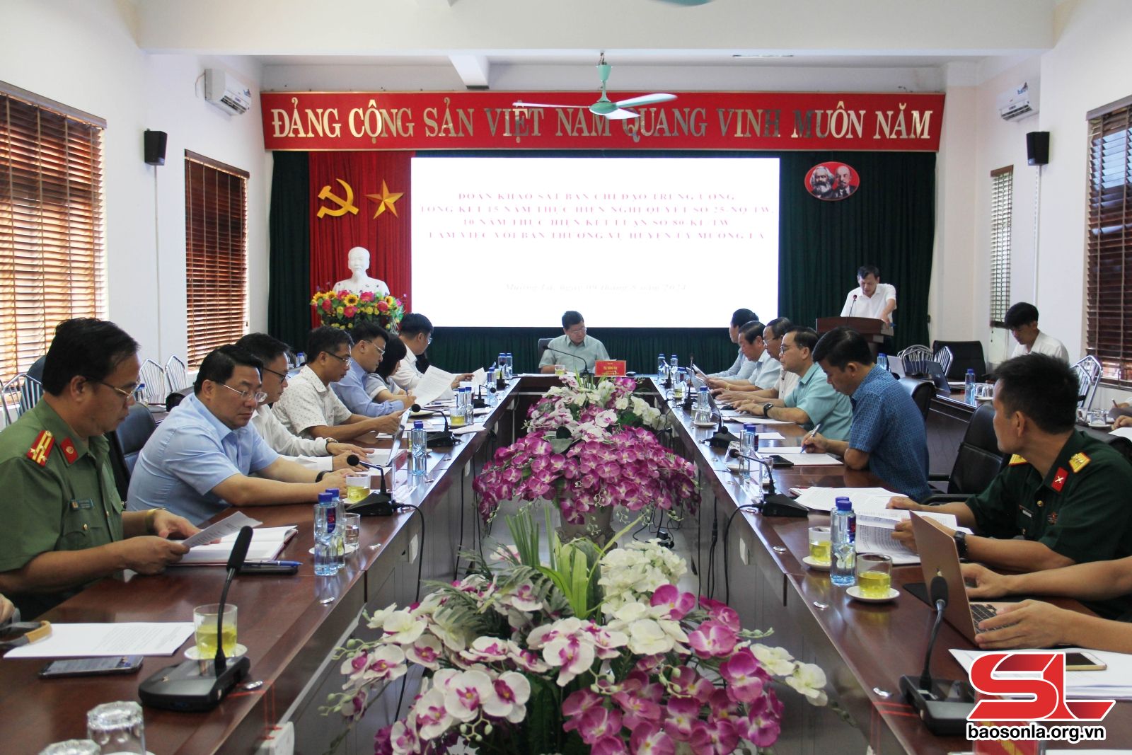 Sáng 9/8, Đoàn khảo sát Ban Chỉ đạo Trung ương tổng kết 15 năm thực hiện Nghị quyết số 25-NQ/TW ngày 25/7/2008 của Ban Chấp hành Trung ương Đảng khóa X và 10 năm thực hiện Kết luận số 80-KL/TW ngày 25/12/2013 của Bộ Chính trị do đồng chí Tạ Văn Hạ, Phó Chủ nhiệm Ủy ban Văn hoá, Giáo dục của Quốc hội làm Trưởng đoàn đã làm việc với Ban Thường vụ Huyện ủy Mường La.