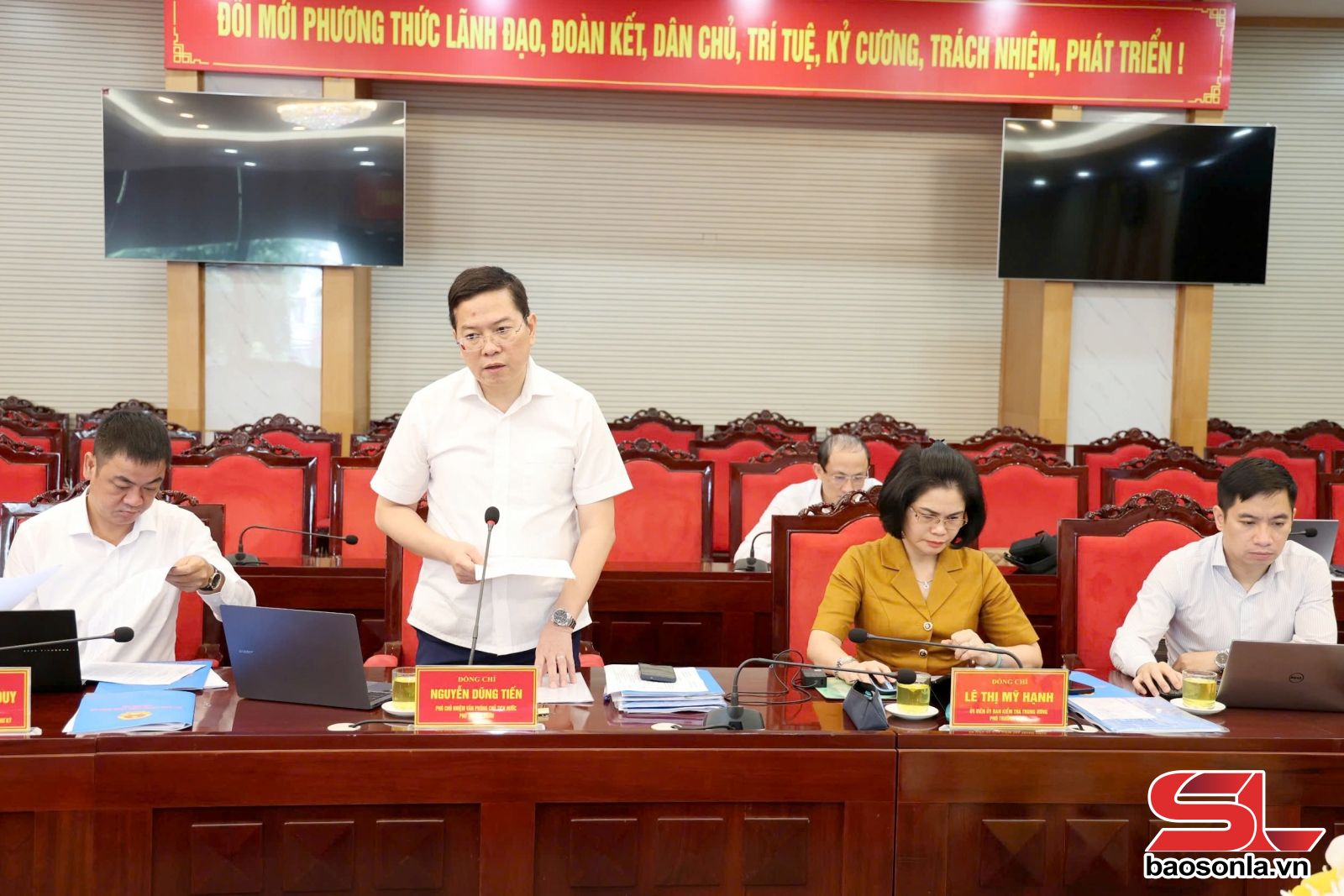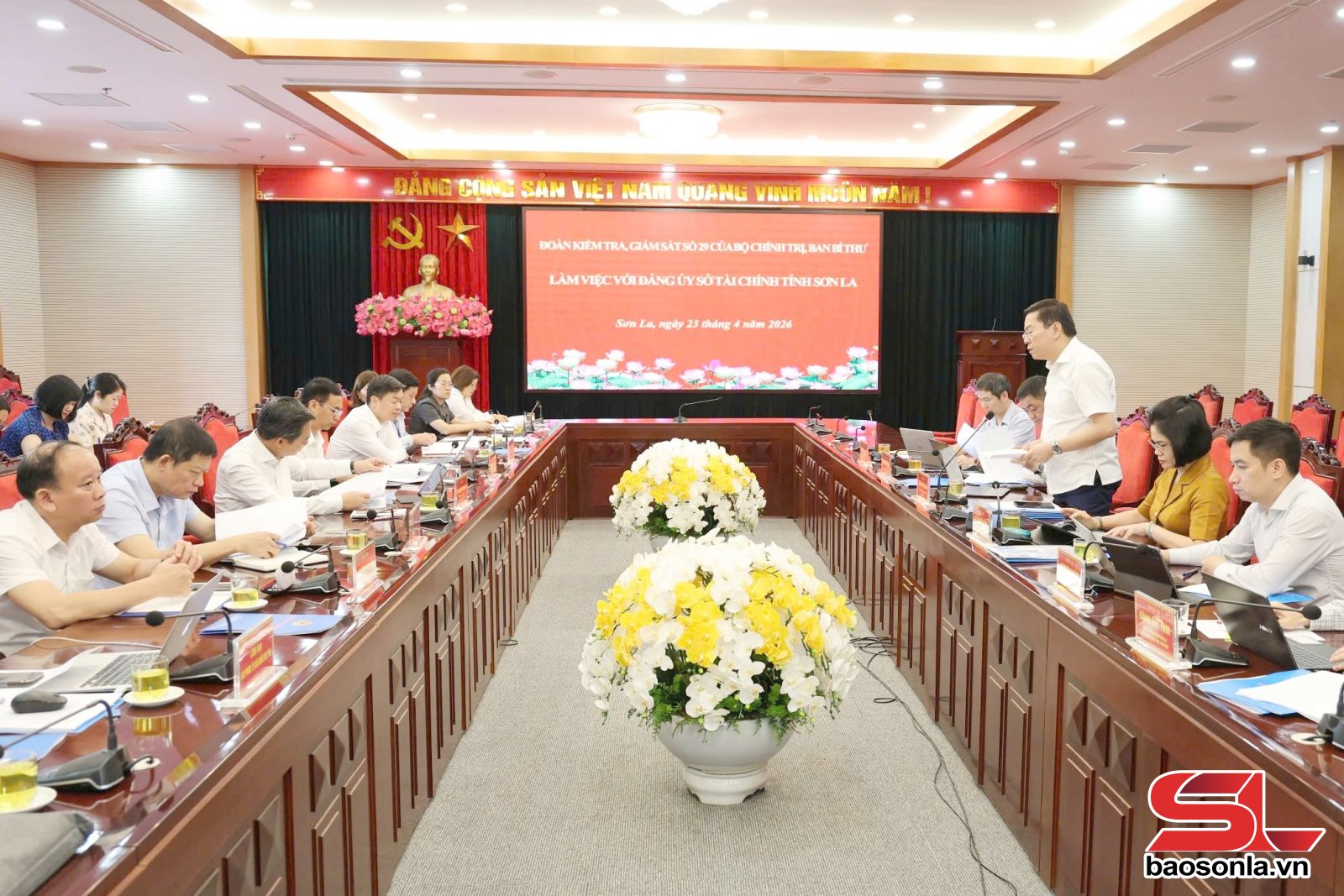 Tiếp tục chương trình kiểm tra, giám sát tại tỉnh Sơn La, ngày 23/4, Đoàn kiểm tra, giám sát số 29 của Bộ Chính trị, Ban Bí thư do đồng chí Nguyễn Dũng Tiến, Phó Chủ nhiệm Văn phòng Chủ tịch nước, Phó trưởng đoàn; đồng chí Lê Thị Mỹ Hạnh, Ủy viên Ủy ban Kiểm tra Trung ương, Phó trưởng đoàn, cùng các thành viên đã làm việc với Đảng ủy Sở Tài chính.