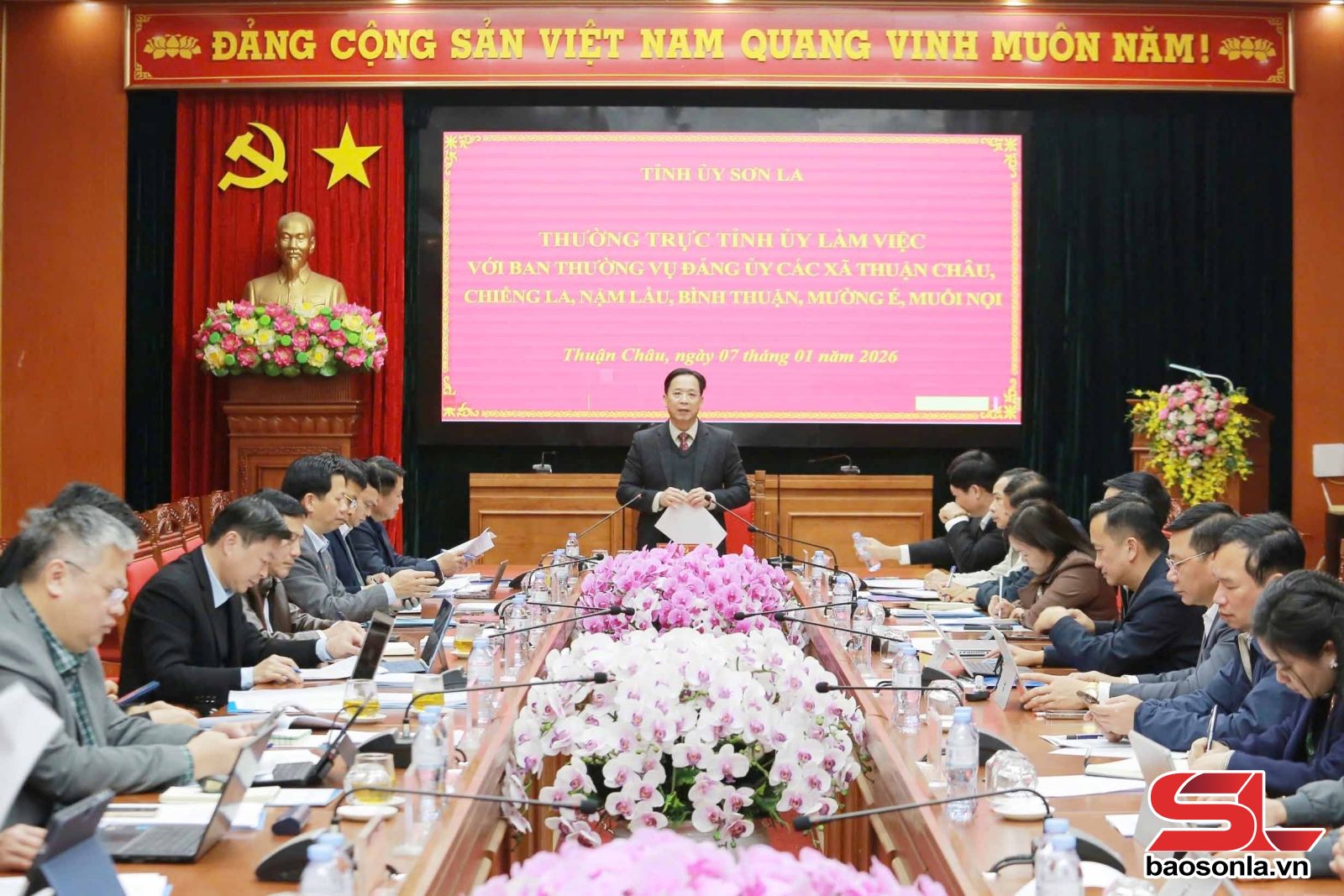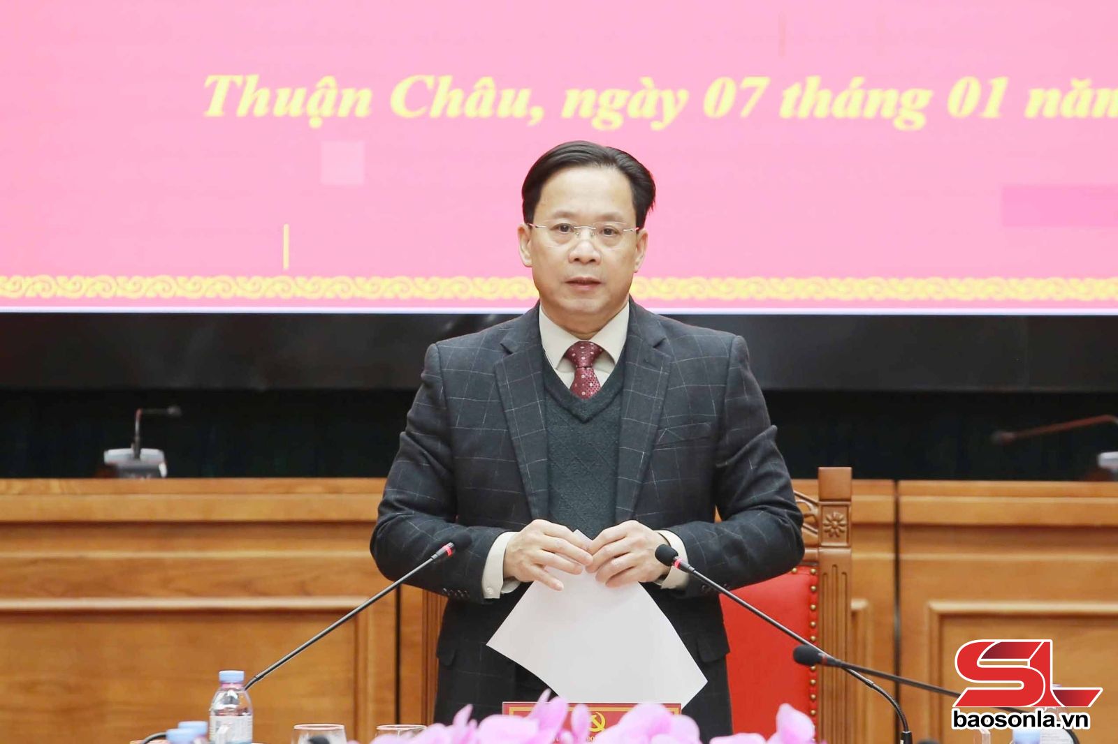 Ngày 7/1, đồng chí Hoàng Văn Nghiệm, Bí thư Tỉnh ủy, Trưởng Đoàn đại biểu Quốc hội tỉnh cùng Đoàn công tác đã làm việc với Ban Thường vụ Đảng ủy các xã: Thuận Châu, Chiềng La, Nậm Lầu, Bình Thuận, Mường É, Muổi Nọi.