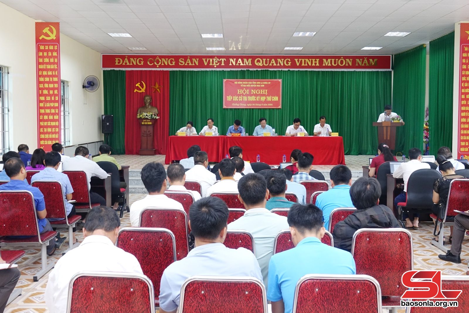 Cử tri các xã đã kiến nghị với cấp có thẩm quyền xem xét giải quyết một số nội dung, như: Cử tri xã Chiềng Chung kiến nghị về việc cấp sổ đỏ các hộ dân bản Ít Hò, Xam Ta vì không có bìa các hộ không tách hộ được, gây bất tiện cho các gia đình; đề nghị hỗ trợ thiết bị Nhà văn hóa bản Tường Chung, phục vụ công tác tuyên truyền cũng như triển khai các vấn đề liên quan đến công việc chung của bản; đầu tư đường giao thông bản Khoa; hỗ trợ thuốc, tiêm phòng dịch gia súc, gia cầm bản Hạm... Cử tri xã Chiềng Ban đề nghị cấp kinh phí làm rãnh đường, tuyến đường trục xã; nâng cấp, sửa chữa tuyến đường trục xã từ đường rẽ 4G vào xã Chiềng Ban đến ngã ba Tong Chinh... Cử tri xã Mường Chanh đề nghị tăng tiền hỗ trợ đội văn nghệ các bản; xem xét hỗ trợ trang thiết bị bên trong nhà văn hoá bản; thay thế các cột điện đường; đầu tư xây mương dẫn nước tại bản Nặm Bông...
