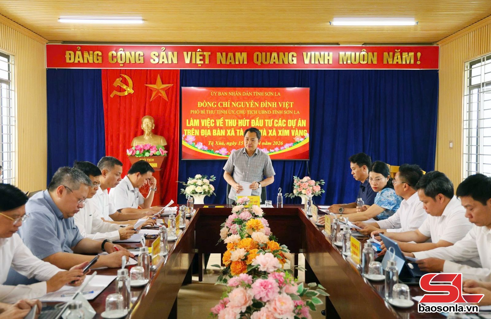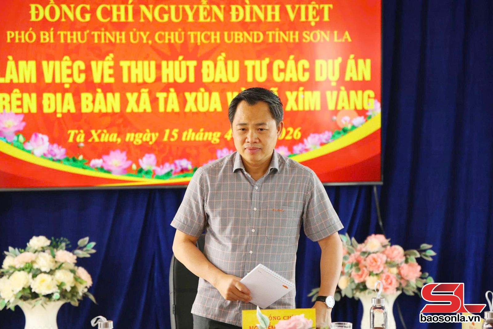 Tại cuộc làm việc, lãnh đạo xã Tà Xùa và Xím Vàng đã báo cáo tình hình thực hiện thu hút đầu tư trong các lĩnh vực du lịch, nông nghiệp và năng lượng. Tại xã Tà Xùa, trên cơ sở đánh giá tiềm năng và nhu cầu thực tế, xã đã xây dựng danh mục 22 dự án thu hút đầu tư, với các nhóm dự án trọng tâm gồm: Du lịch nghỉ dưỡng, trải nghiệm; du lịch cộng đồng và dịch vụ hỗ trợ; du lịch nông nghiệp. Một số dự án đang bước đầu được các nhà đầu tư quan tâm và triển khai các thủ tục theo quy định, gồm: Dự án của Công ty CP Tà Xùa Skyline; dự án Đỉnh Gió; dự án năng lượng tái tạo của Tập đoàn Hataco; các dự án thủy điện nhỏ và chuỗi chế biến nông sản chè, miến dong, sơn tra.