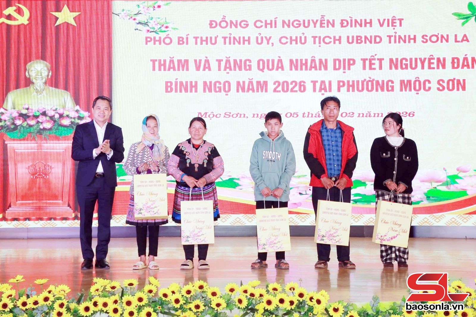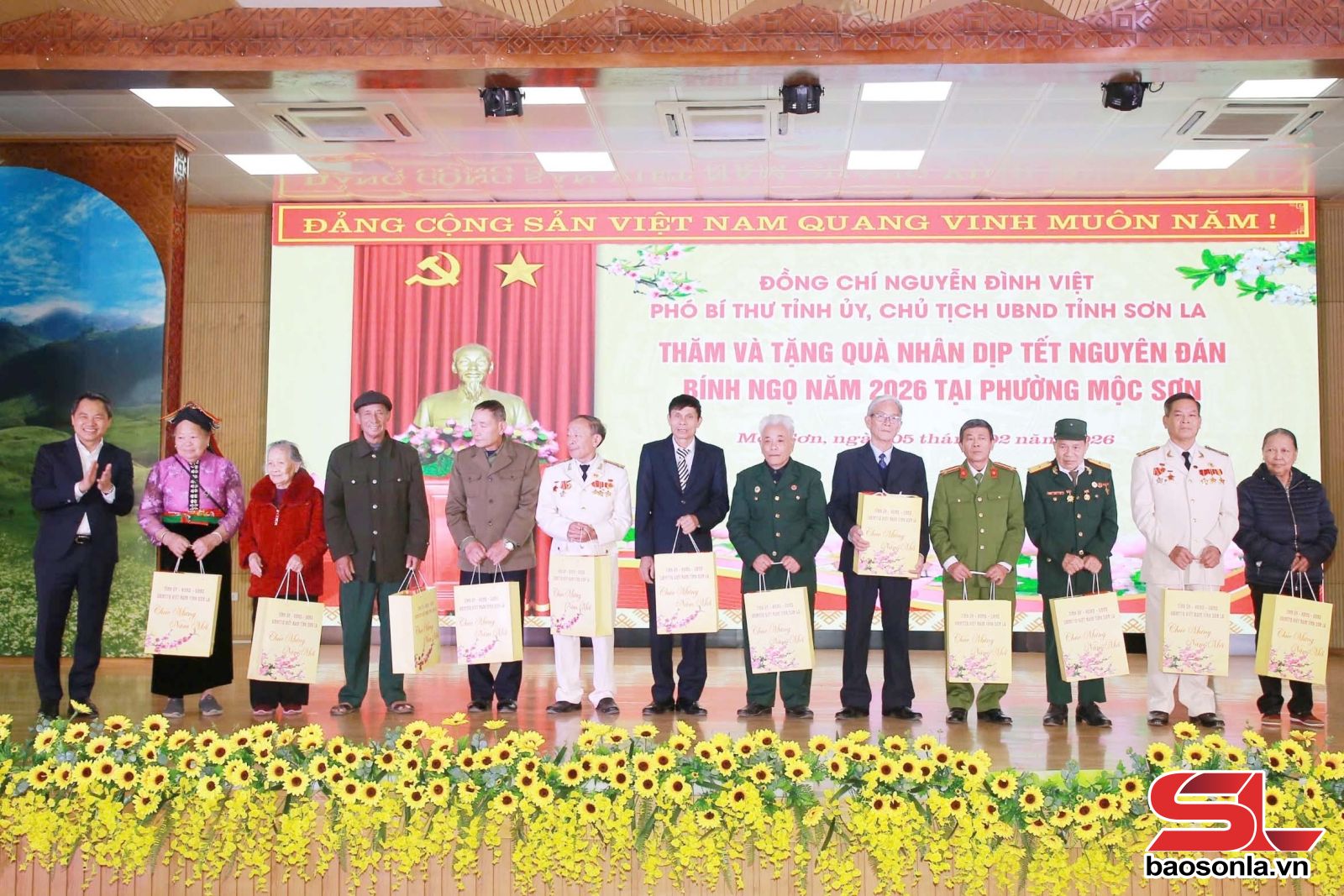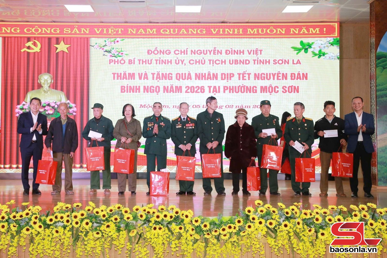 Nhân dịp chuẩn bị đón Tết Nguyên đán Bính Ngọ 2026, đồng chí Chủ tịch UBND tỉnh đã trao 40 suất quà của Tỉnh ủy, HĐND, UBND, Ủy ban MTTQ tỉnh cho hộ gia đình chính sách, người có công, hộ nghèo trên địa bàn phường Mộc Châu và Mộc Sơn; Viettel Sơn La tặng 20 suất quà cho các hộ gia đình chính sách, người có công phường Mộc Châu và Mộc Sơn.