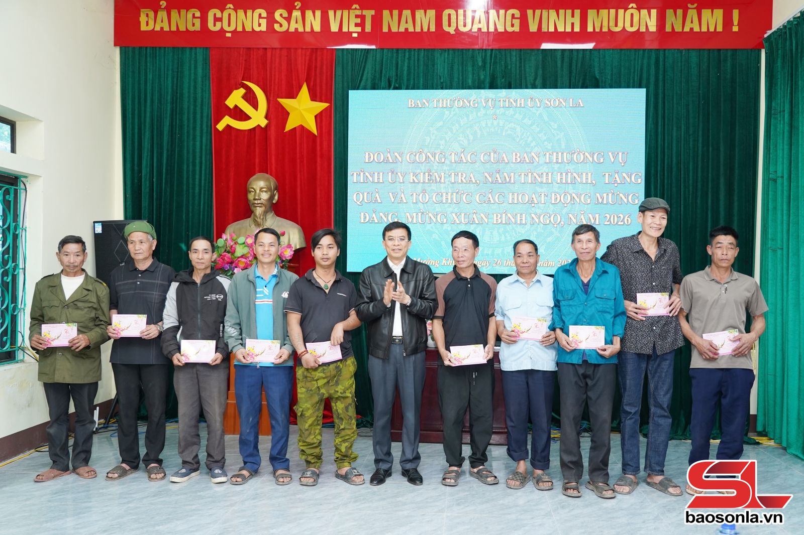 Các xã đã báo cáo Đoàn công tác về tiến độ chuẩn bị các hoạt động mừng Đảng, mừng Xuân Bính Ngọ 2026. Theo đó, đã triển khai công tác an sinh xã hội, thăm, tặng quà các gia đình chính sách, hộ nghèo có nguy cơ đói giáp hạt, kêu gọi nhân dân cùng các tổ chức thiện nguyện trong và ngoài tỉnh cùng tham gia hỗ trợ. Đến nay, các hộ nghèo và cận nghèo ở các xã được hỗ trợ suất quà Tết với mức 500 nghìn đồng/hộ nghèo và 300 nghìn đồng/hộ cận nghèo.