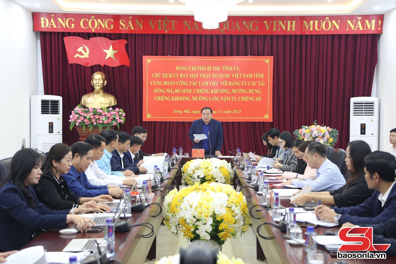 Tiếp tục chương trình công tác, chiều 18/12, đồng chí Chá A Của, Phó Bí thư Tỉnh ủy, Chủ tịch Ủy ban MTTQ Việt Nam tỉnh cùng đoàn công tác đã làm việc với Đảng ủy các xã: Sông Mã, Bó Sinh, Mường Hung, Chiềng Khoong, Mường Lầm, Nậm Ty, Chiềng Sơ, Chiềng Khương về tình hình hoạt độngsau khi vận hành chính quyền địa phương 2 cấp. Cùng đi có đồng chí Hoàng Thị Đôi, Ủy viên Hội đồng Dân tộc của Quốc hội, Phó Trưởng đoàn chuyên trách Đoàn Đại biểu Quốc hội tỉnh; lãnh đạo một số sở, ngành của tỉnh.