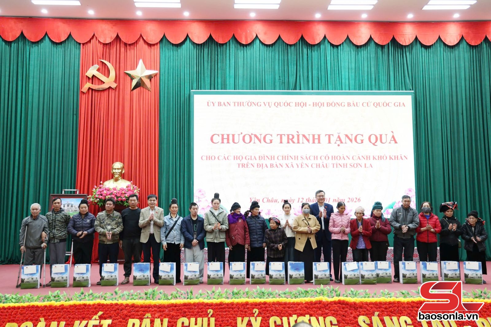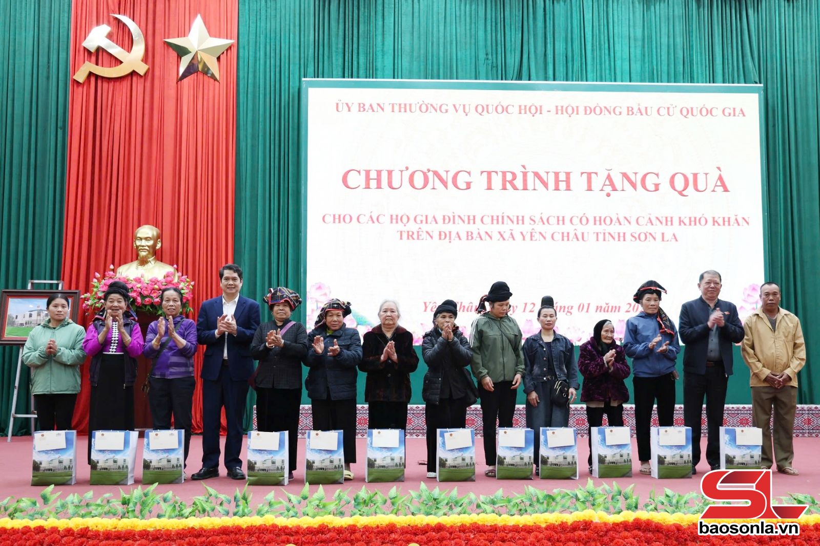 Nhân dịp này, Đoàn giám sát, kiểm tra của Ủy ban Thường vụ Quốc hội và Hội đồng bầu cử Quốc gia đã tặng 50 suất quà cho các hộ gia đình chính sách có hoàn cảnh khó khăn tại xã Yên Châu.