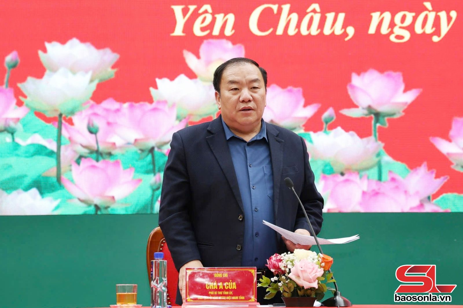 Tiếp và đón Đoàn, tỉnh Sơn La có các đồng chí: Chá A Của, Phó Bí thư Tỉnh ủy, Chủ tịch Ủy ban MTTQ Việt Nam tỉnh; Vi Đức Thọ, Ủy viên Ban Thường vụ Tỉnh ủy, Phó Chủ tịch Thường trực HĐND tỉnh; Nguyễn Minh Tiến, Phó Chủ tịch UBND tỉnh; đại diện lãnh đạo một số sở, ngành của tỉnh; Thường trực Đảng ủy và Ủy ban bầu cử xã Yên Châu.