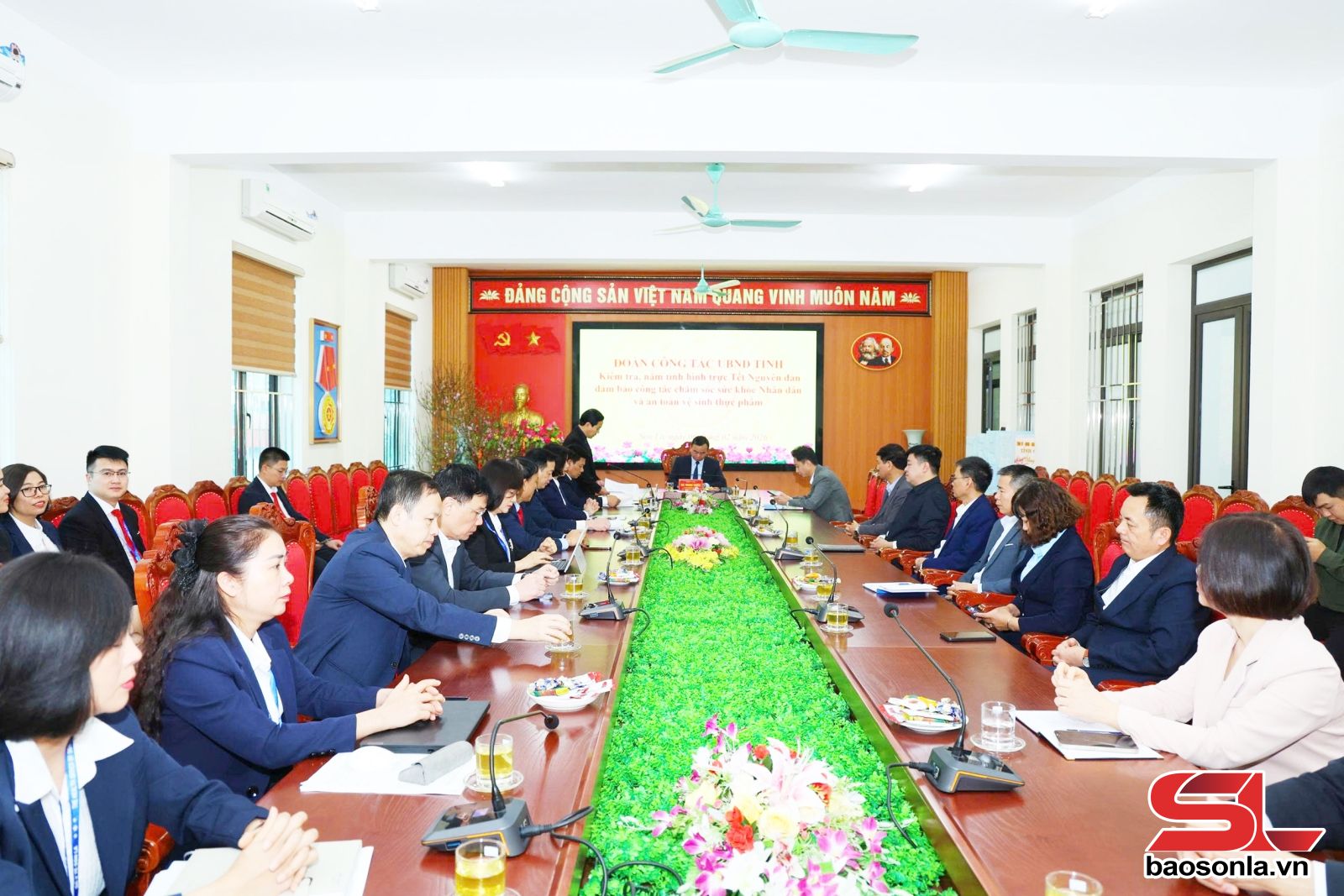 Thăm và chúc tết tại Sở Y tế, Đoàn công tác đã nghe lãnh đạo Sở báo cáo về đảm bảo tổ chức các hoạt động đón Tết Nguyên đán; công tác y tế trong dịp nghỉ Tết Nguyên đán và mùa Lễ hội Xuân năm 2026; công tác kiểm tra, giám sát các cơ sở điều trị thay thế, cơ sở cấp phát thuốc và đảm bảo cung ứng thuốc phòng, chống dịch bệnh và nhu cầu sử dụng thuốc trong dịp Tết.