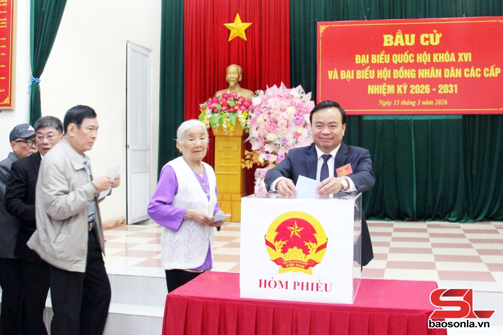 Ngay sau nghi thức chào cờ, nghe tổ bầu cử phổ biến thể lệ, nội quy phòng bỏ phiếu, nguyên tắc, trình tự bầu, đồng chí Hà Trung Chiến cùng các cử tri tham gia bỏ phiếu thực hiện quyền công dân để lựa chọn ra các đại biểu Quốc hội và đại biểu HĐND các cấp đủ đức, đủ tài, đủ tiêu chuẩn, xứng đáng đại diện cho ý chí, nguyện vọng của nhân dân để bầu vào đại biểu Quốc hội khóa XVI và đại biểu HĐND các cấp nhiệm kỳ 2026-2031.