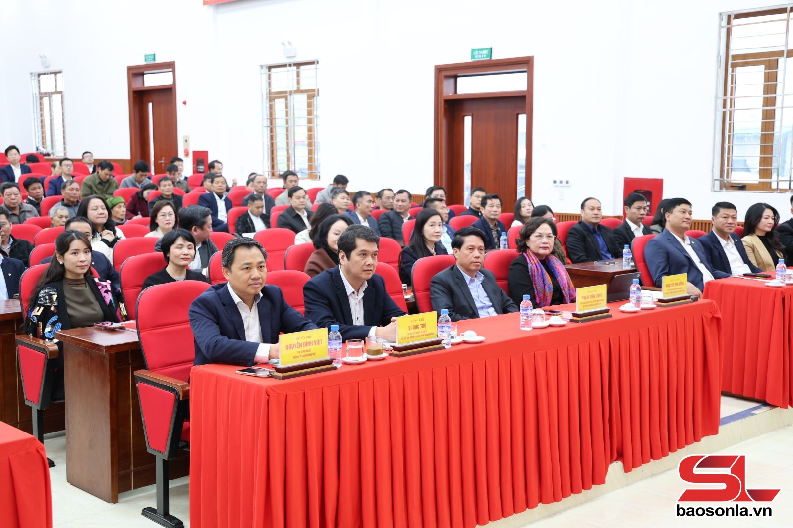 Tiếp đón Đoàn công tác, tỉnh Sơn La có các đồng chí: Nguyễn Đình Việt, Phó Bí thư Tỉnh uỷ, Chủ tịch UBND tỉnh; Vi Đức Thọ, Uỷ viên Ban Thường vụ Tỉnh uỷ, Phó Chủ tịch Thường trực HĐND tỉnh; lãnh đạo Ủy ban MTTQ Việt Nam tỉnh, Ngân hàng Nhà nước Chi nhánh khu vực 3 và đại diện Chi nhánh các ngân hàng thương mại trên địa bàn tỉnh.