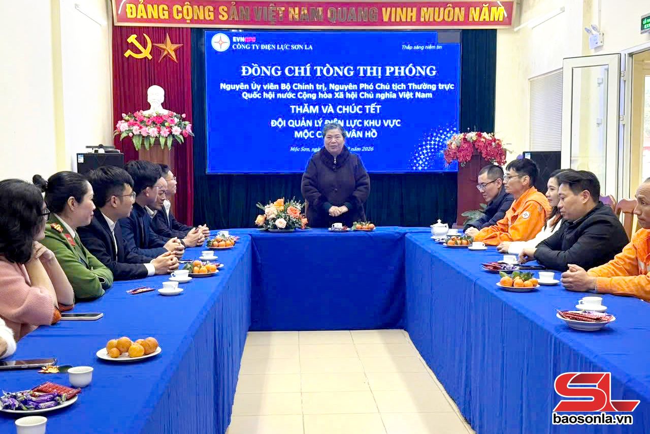 Ngày 8/2, đồng chí Tòng Thị Phóng, nguyên Ủy viên Bộ Chính trị, nguyên Phó Chủ tịch Thường trực Quốc hội nước Cộng hòa Xã hội chủ nghĩa Việt Nam, đã tới thăm, động viên và chúc Tết tập thể cán bộ, công nhân viên Đội quản lý Điện lực khu vực Mộc Châu - Vân Hồ (Công ty Điện lực Sơn La).
