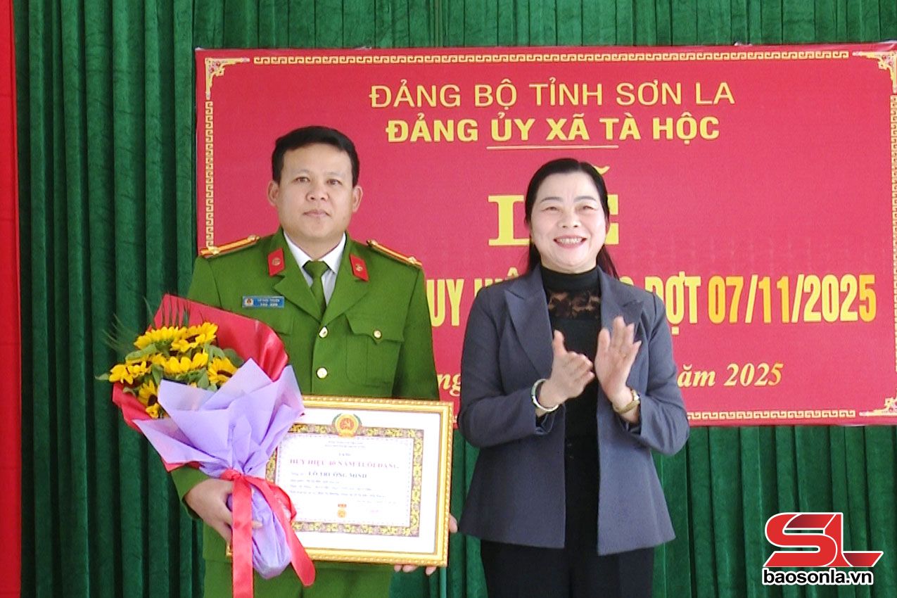 Đồng chí Trưởng ban Tuyên giáo và Dân vận Tỉnh ủy đã trao Huy hiệu 65 năm tuổi Đảng cho đảng viên Lò Văn Pành, Chi bộ bản Nà Hường; Huy hiệu 60 năm tuổi Đảng cho đảng viên Đỗ Quốc Ngâm, Chi bộ tiểu khu 8. Lãnh đạo xã Tà Hộc chuyển trao Huy hiệu 40 năm tuổi Đảng cho gia đình đảng viên Lò Trường Minh, Chi bộ bản Nà Hường.