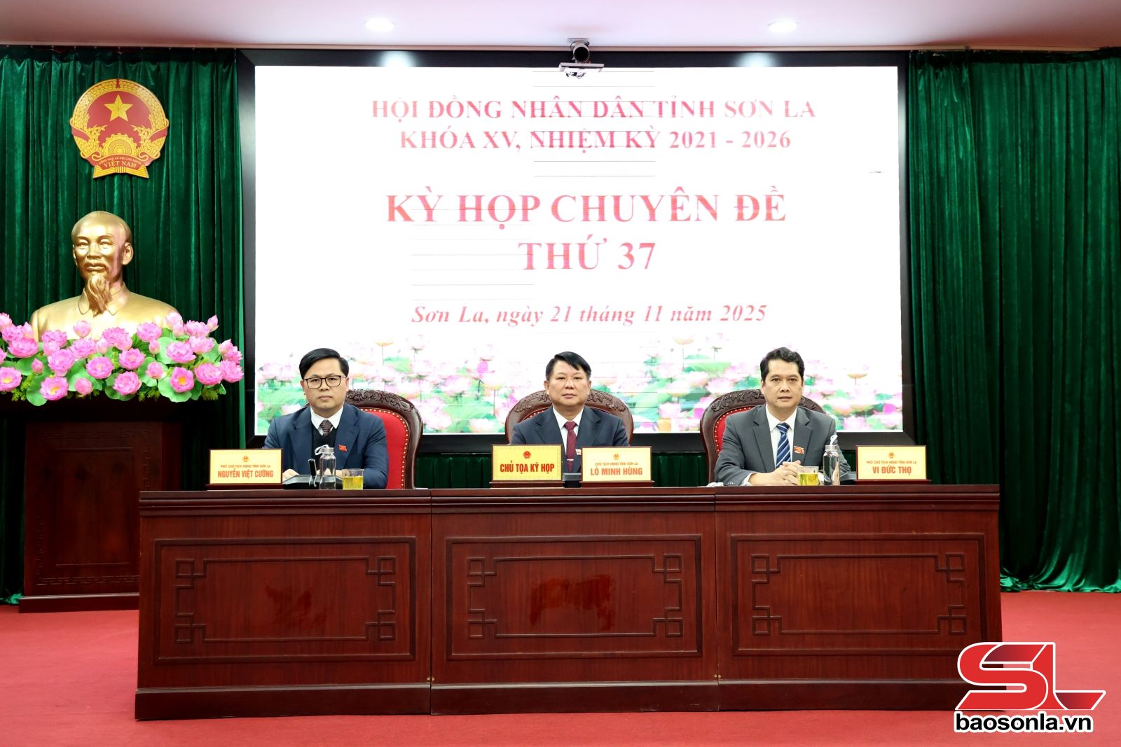 Tiếp tục chương trình làm việc, dưới dự điều hành của đồng chí Lò Minh Hùng, Phó Bí thư Thường trực Tỉnh ủy, Chủ tịch HĐND tỉnh; đồng chí Vi Đức Thọ, Ủy viên Ban Thường vụ Tỉnh ủy, Phó Chủ tịch HĐND tỉnh; đồng chí Nguyễn Việt Cường, Phó Chủ tịch HĐND tỉnh, Kỳ họp đã xem xét, thông qua 4 Tờ trình và Dự thảo Nghị quyết gồm: Điều chỉnh, giao dự toán chi ngân sách cấp tỉnh năm 2025 cho các đơn vị thực hiện hợp nhất, tổ chức lại; phân bổ kinh phí bổ sung có mục tiêu từ nguồn ngân sách Trung ương cho ngân sách địa phương tại Quyết định số 2332/QĐ-TTg ngày 22/10/2025 của Thủ tướng Chính phủ; thông qua danh mục bổ sung các khu đất thực hiện đấu thầu lựa chọn nhà đầu tư thực hiện dự án đầu tư có sử dụng đất trên địa bàn tỉnh Sơn La năm 2025 (đợt 6); quy định mức chi, thời gian được hưởng hỗ trợ kinh phí phục vụ bầu cử đại biểu Quốc hội khóa XVI và đại biểu HĐND các cấp nhiệm kỳ 2026 - 2031 tỉnh Sơn La.