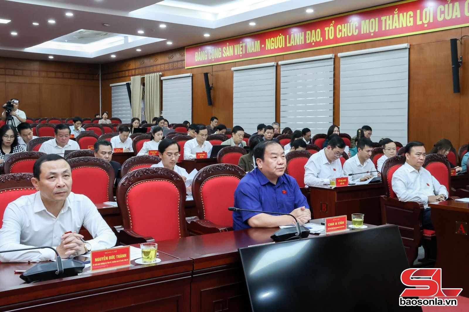 Các đồng chí: Lò Minh Hùng, Phó Bí thư Thường trực Tỉnh ủy, Chủ tịch HĐND tỉnh; Vi Đức Thọ, Ủy viên Ban Thường vụ Tỉnh ủy, Phó Chủ tịch Thường trực HĐND tỉnh; Nguyễn Việt Cường, Phó Chủ tịch HĐND tỉnh chủ tọa, điều hành kỳ họp.