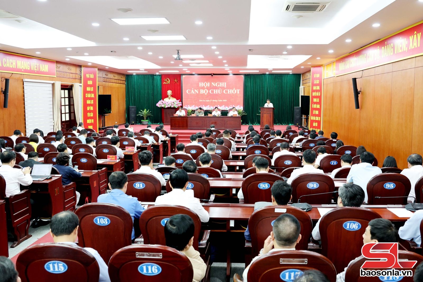 Chủ trì hội nghị có các đồng chí: Hoàng Văn Nghiệm, Ủy viên Ban Chấp hành Trung ương Đảng, Bí thư Tỉnh ủy, Trưởng Đoàn đại biểu Quốc hội tỉnh; Lò Minh Hùng, Phó Bí thư Thường trực Tỉnh ủy, Chủ tịch HĐND tỉnh; Nguyễn Đình Việt, Phó Bí thư Tỉnh uỷ, Chủ tịch UBND tỉnh; Chá A Của, Phó Bí thư Tỉnh uỷ, Chủ tịch Ủy ban MTTQ Việt Nam tỉnh.