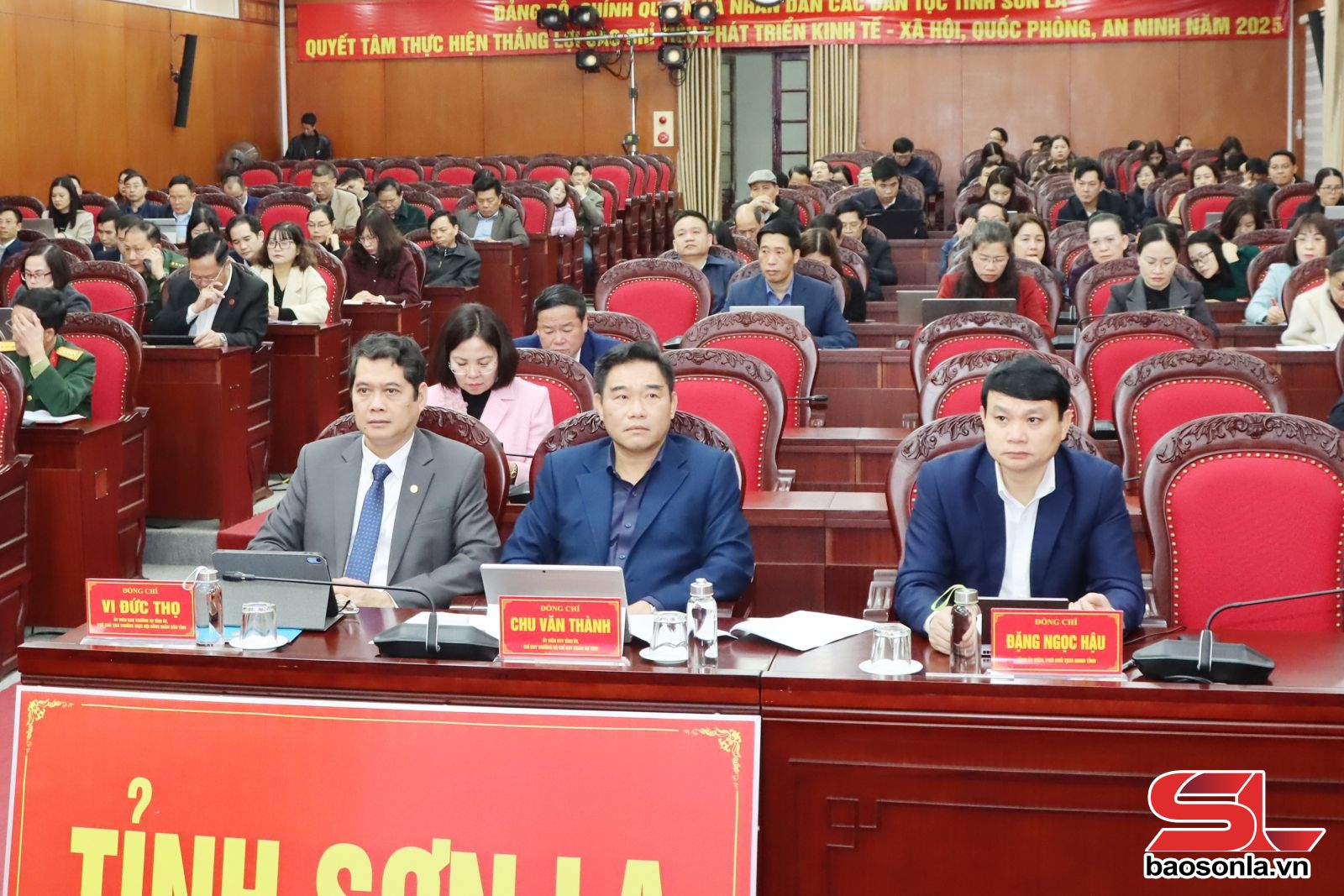 Tại điểm cầu tỉnh Sơn La có các đồng chí: Vi Đức Thọ, Ủy viên Ban Thường vụ Tỉnh ủy, Phó Chủ tịch Thường trực HĐND tỉnh; Đại tá Chu Văn Thành, Ủy viên Ban Thường vụ Tỉnh ủy, Chỉ huy trưởng Bộ CHQS tỉnh; Đặng Ngọc Hậu, Phó Chủ tịch UBND tỉnh; lãnh đạo Ban Tuyên giáo và Dân vận Tỉnh ủy; các đồng chí báo cáo viên Trung ương của tỉnh; báo cáo viên Tỉnh ủy, báo cáo viên đảng ủy các cơ quan Đảng tỉnh, Đảng ủy UBND tỉnh. Hội nghị được kết nối đến các điểm cầu của xã, phường trực thuộc Tỉnh ủy.