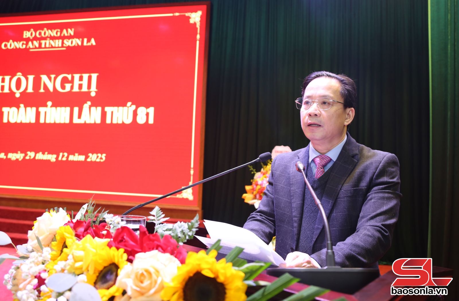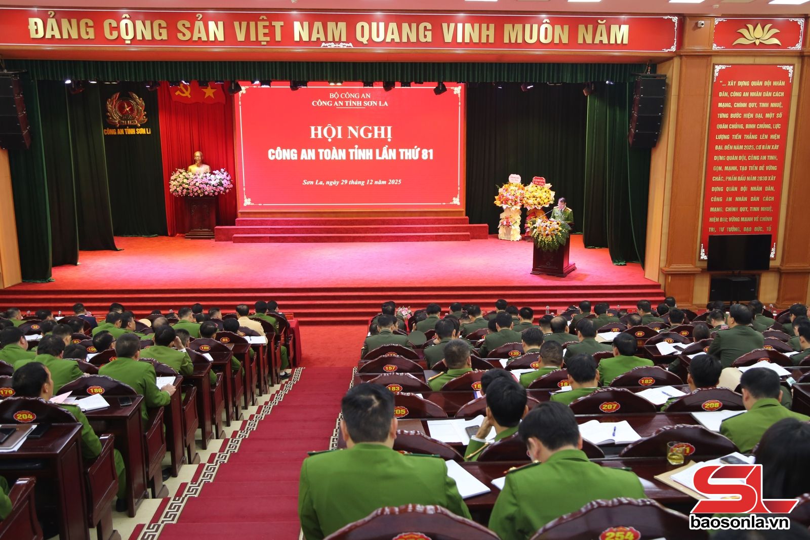 Phát biểu tại Hội nghị, đồng chí Bí thư Tỉnh ủy ghi nhận những thành tích của lực lượng Công an Sơn La đạt được trong năm 2025. Đồng thời, đề nghị năm 2026, lực lượng Công an tiếp tục tham mưu quán triệt, tổ chức thực hiện tốt các nghị quyết, chỉ thị của Bộ Chính trị, Ban Chấp hành Trung ương, của Ban Thường vụ Tỉnh ủy đối với công tác bảo đảm an ninh trật tự trong tình hình mới. Chủ động phòng ngừa, ngăn chặn các nguy cơ mất ổn định từ sớm, từ xa, không để xảy ra bị động, bất ngờ, trọng tâm là bảo vệ tuyệt đối an ninh, an toàn trước, trong và sau thời gian diễn ra Đại hội Đại biểu toàn quốc lần thứ XIV của Đảng, bầu cử đại biểu Quốc hội khóa XVI, đại biểu Hội đồng nhân dân các cấp nhiệm kỳ 2026-2031. Nâng cao chất lượng công tác xây dựng phong trào "Toàn dân bảo vệ an ninh Tổ quốc", đẩy mạnh công tác dân vận gắn với xây dựng nền an ninh nhân dân, thế trận an ninh nhân dân vững chắc...