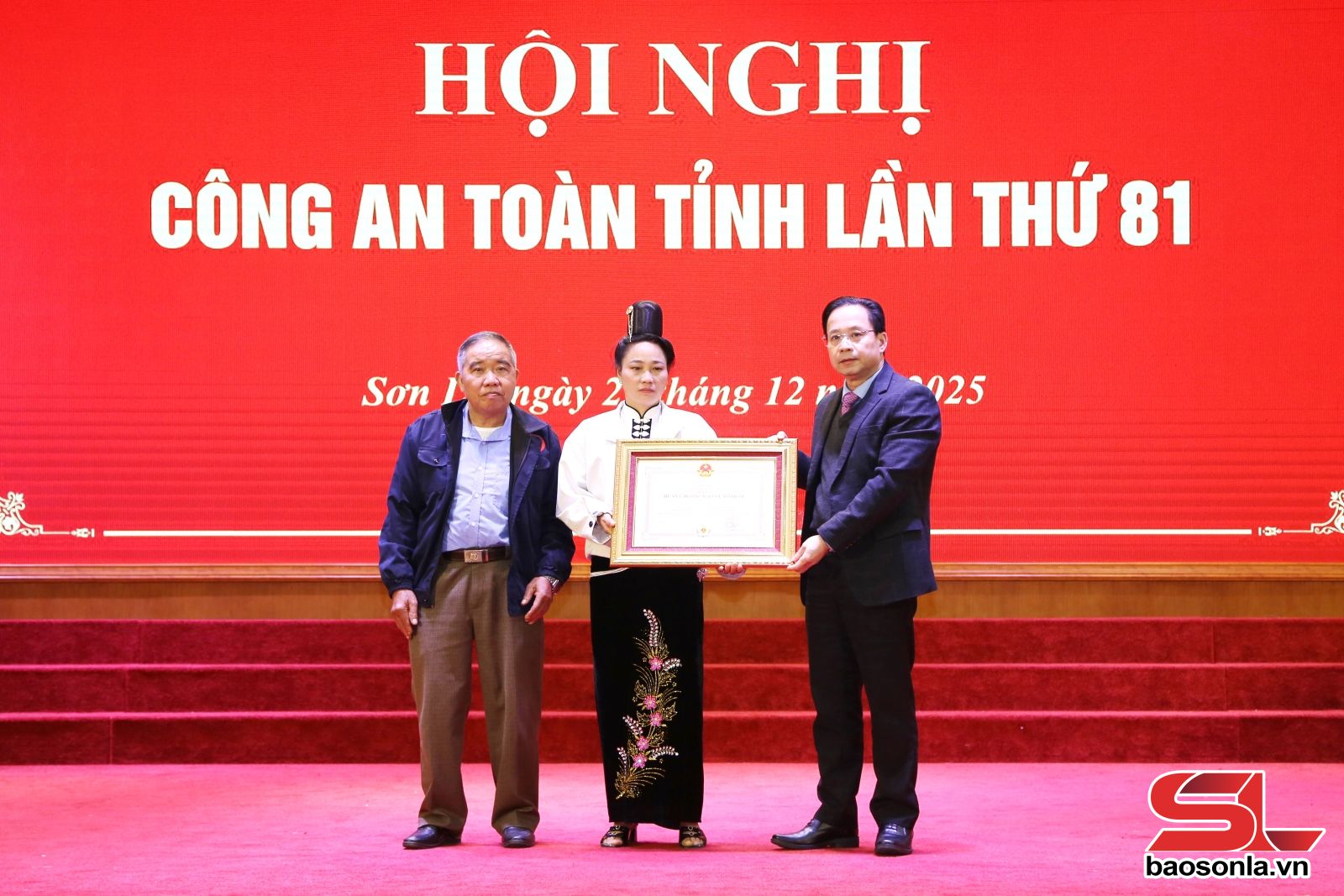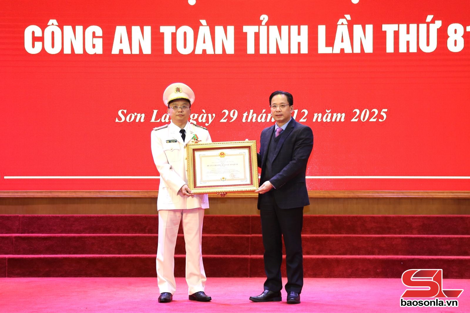 Nhân dịp này, Chủ tịch nước tặng thưởng Huân chương Chiến công hạng Nhì cho đồng chí Thiếu tướng Đặng Trọng Cường, Ủy viên Ban Thường vụ Tỉnh ủy, Giám đốc Công an tỉnh Sơn La; tặng thưởng Huân chương Bảo vệ Tổ quốc hạng Ba 1 cá nhân; truy tặng Huân chương Bảo vệ Tổ quốc hạng Ba 1 cá nhân; Thủ tướng Chính phủ tặng bằng khen 20 cá nhân; Bộ Công an tặng Cờ thi đua 11 tập thể thuộc Công an tỉnh Sơn La; Chủ tịch UBND tỉnh tặng bằng khen 4 tập thể, 4 cá nhân có nhiều thành tích xuất sắc.