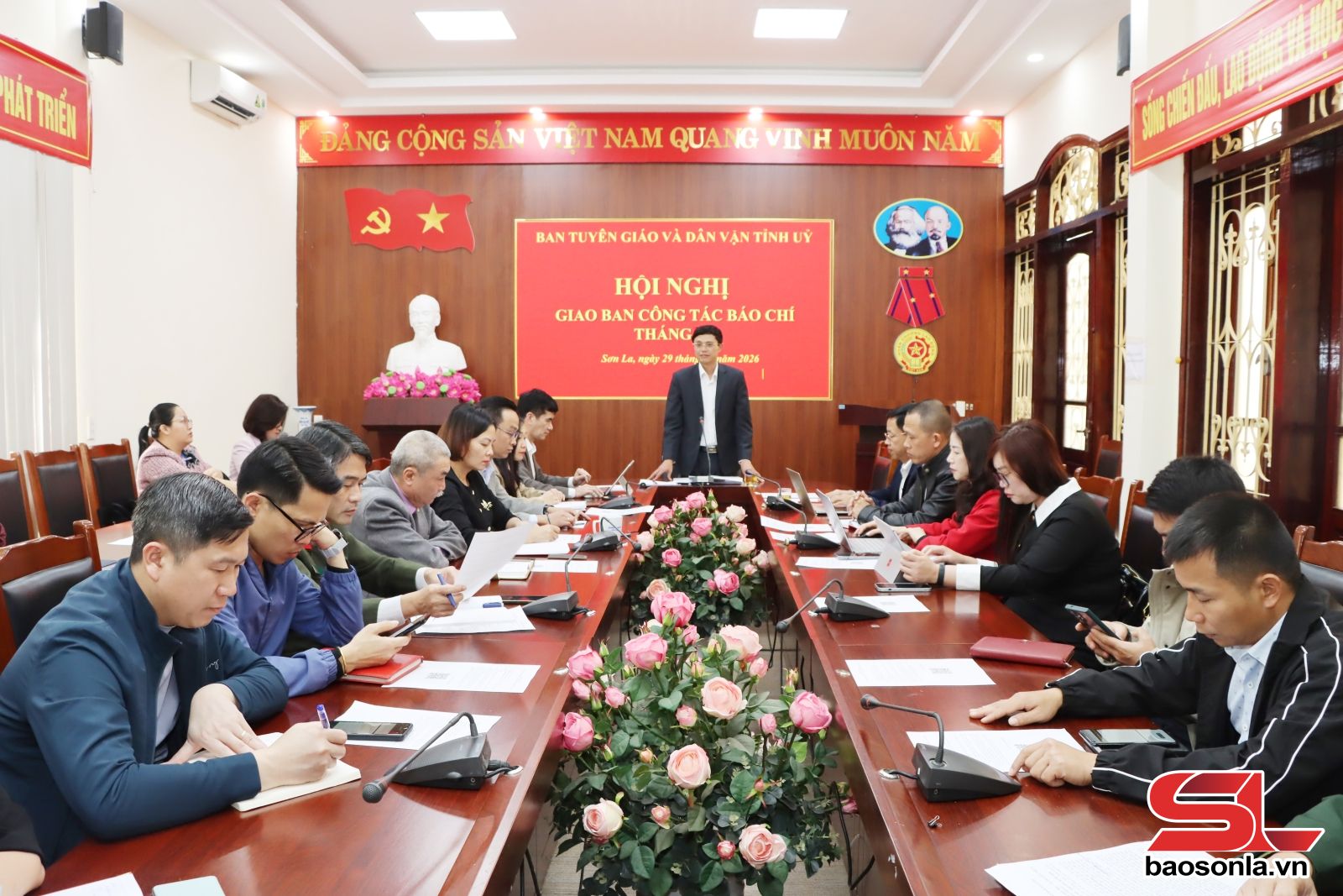 Ngày 29/1, Ban Tuyên giáo và Dân vận Tỉnh ủy đã tổ chức Hội nghị giao ban công tác báo chí tháng 1/2026, định hướng công tác tuyên truyền tháng 2. Dự hội nghị có lãnh đạo văn phòng UBND tỉnh; đại diện các cơ quan báo chí địa phương và Trung ương đóng trên địa bàn tỉnh.