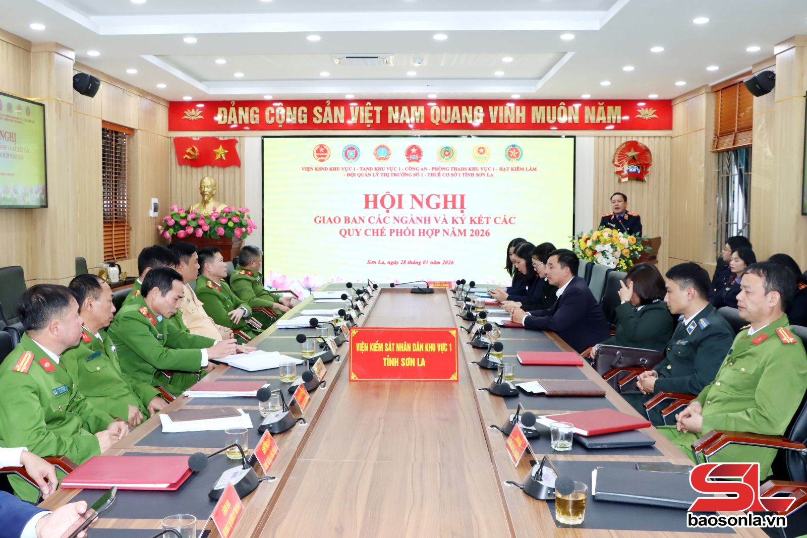 Ngày 28/1, Viện Kiểm sát nhân dân, Tòa án nhân dân, Phòng Thi hành án dân sự khu vực 1; một số đơn vị trực thuộc Công an tỉnh; Hạt Kiểm lâm khu vực II, XII, XIII, Đội Quản lý thị trường số 1, Thuế Cơ sở 1 đã tổ chức Hội nghị giao ban các ngành và ký kết các quy chế phối hợp năm 2026.