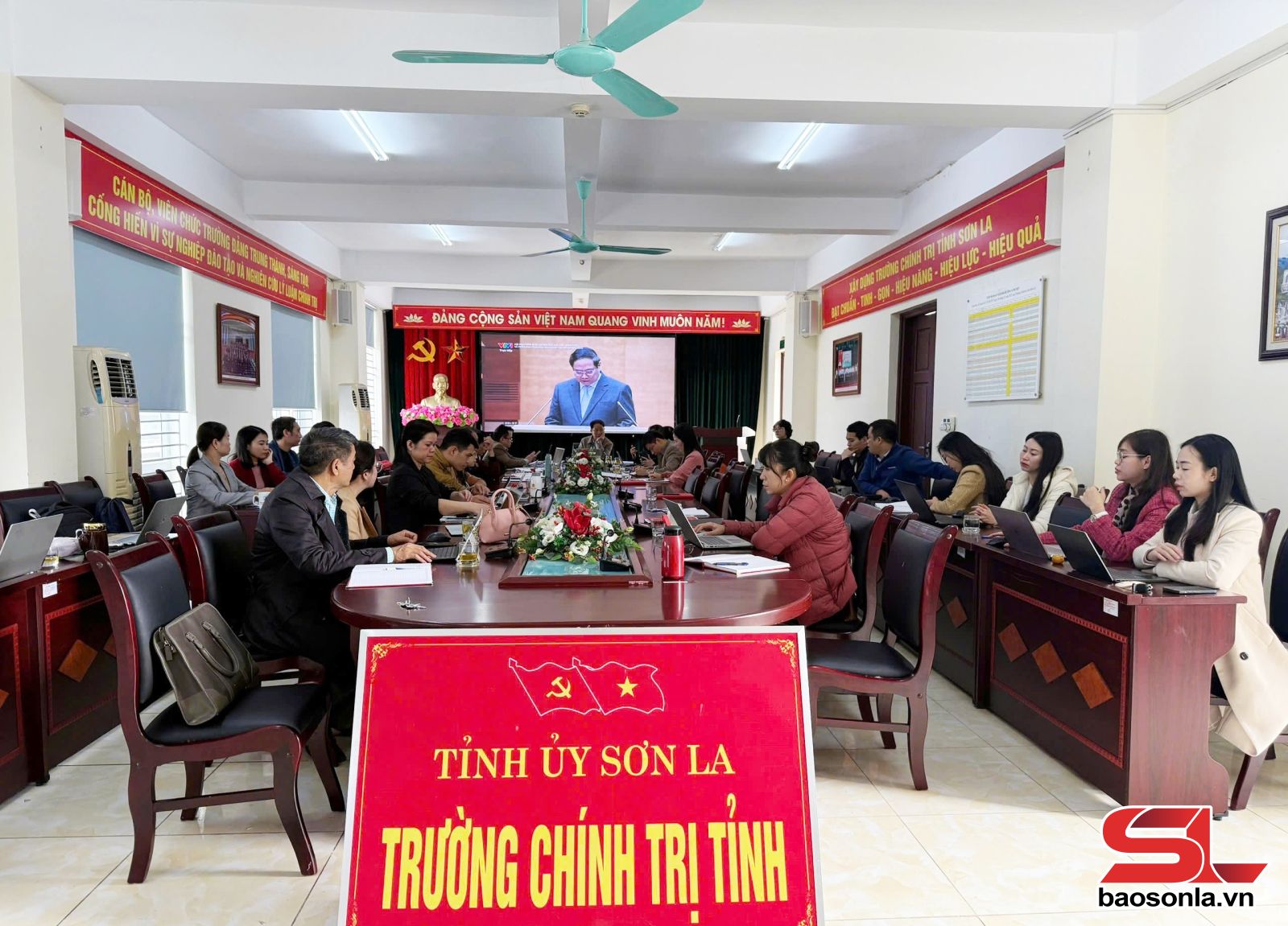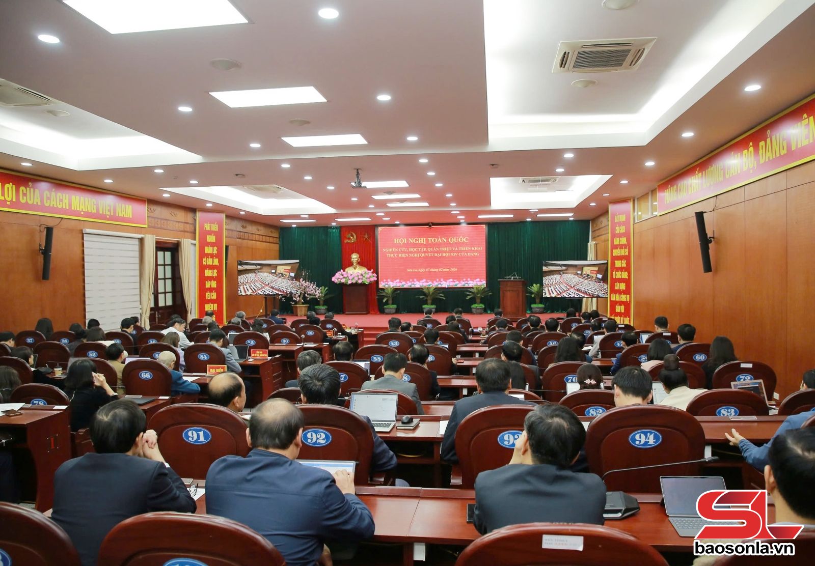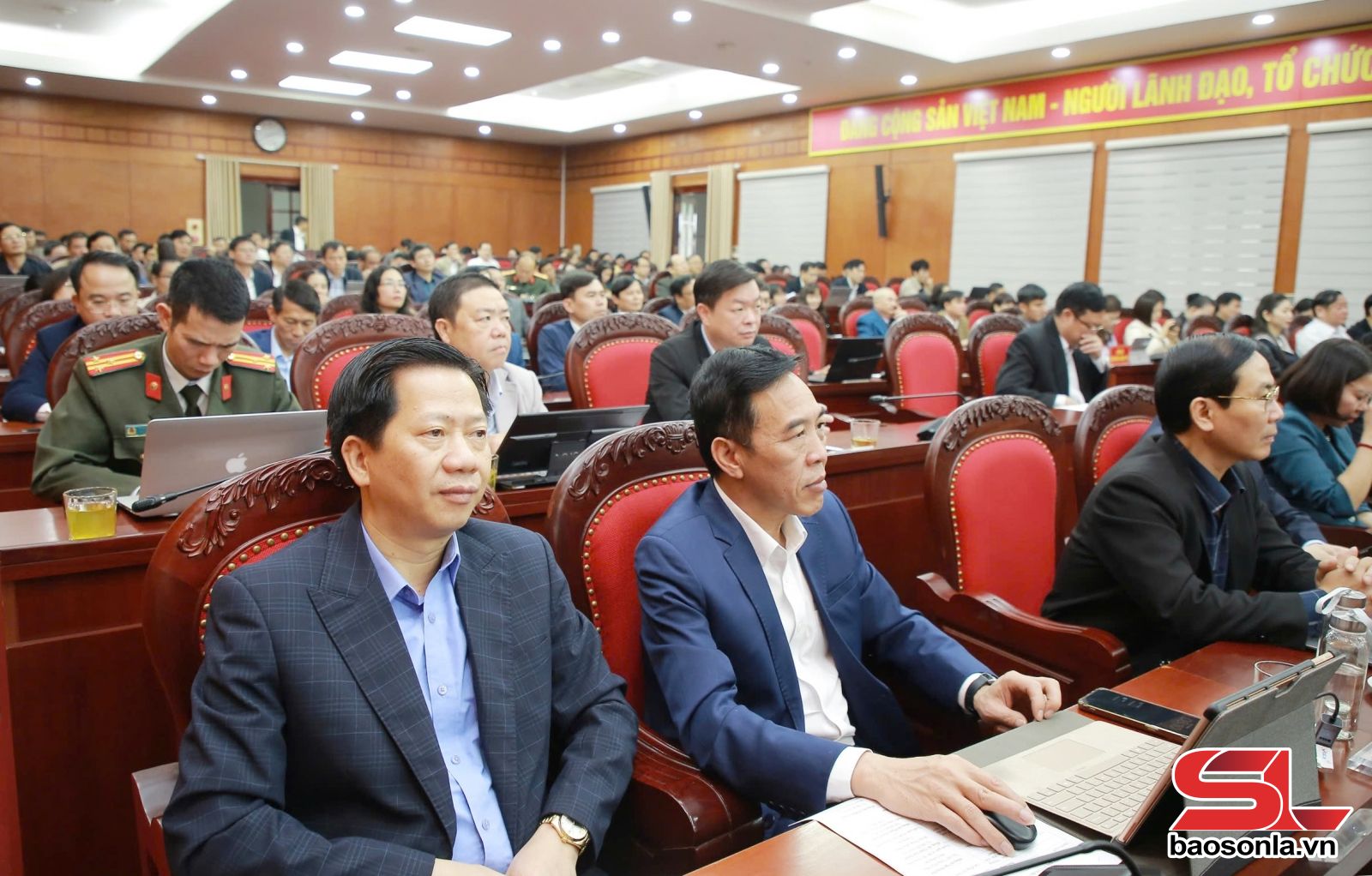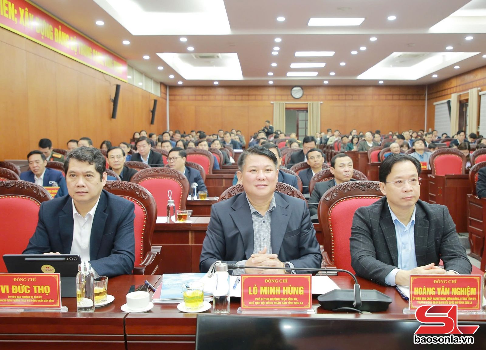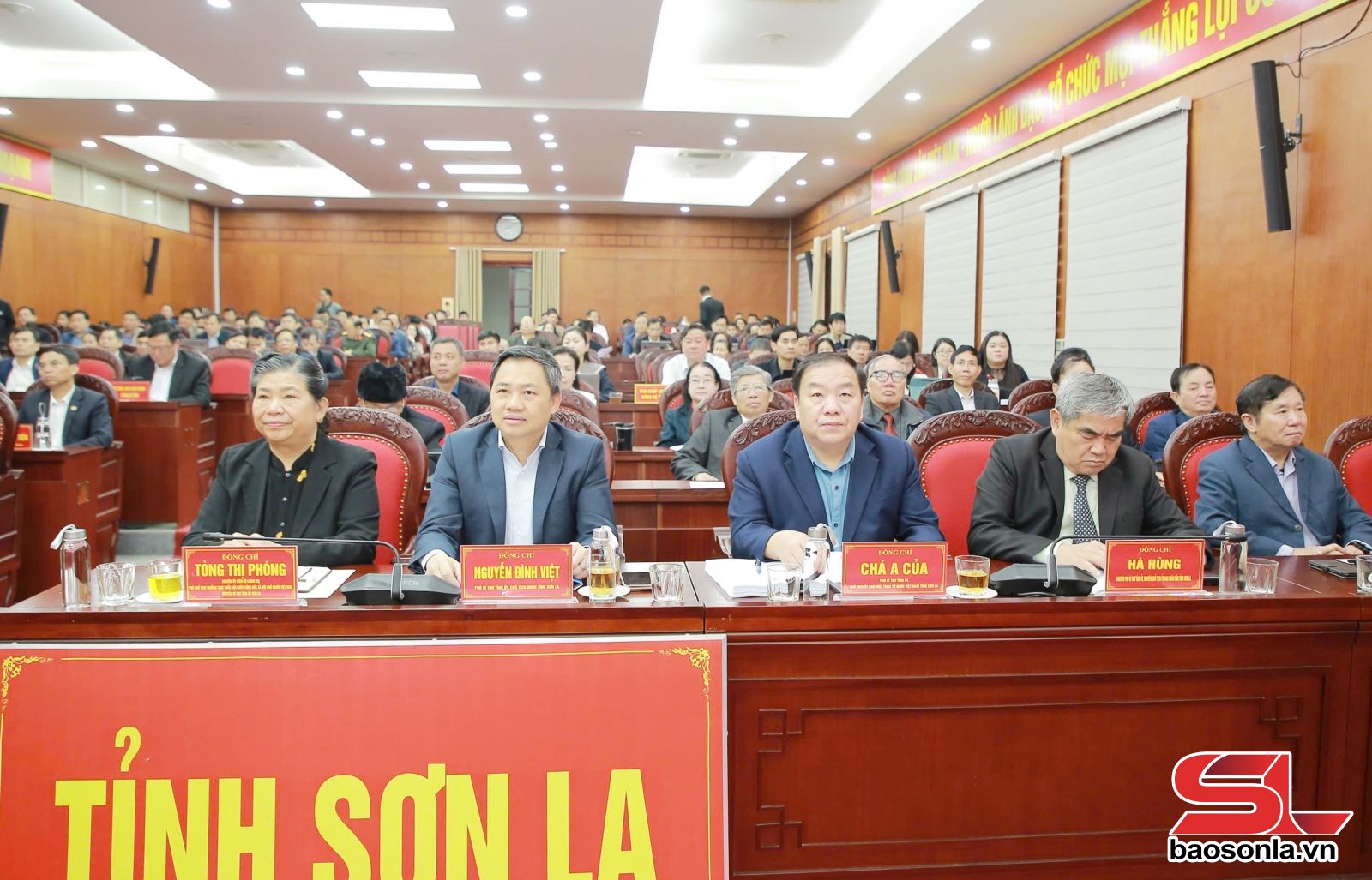 Dự hội nghị tại điểm cầu tỉnh Sơn La có các đồng chí: Tòng Thị Phóng, nguyên Ủy viên Bộ Chính trị, nguyên Phó Chủ tịch Thường trực Quốc hội; Hoàng Văn Nghiệm, Ủy viên Ban Chấp hành Trung ương Đảng, Bí thư Tỉnh ủy, Trưởng Đoàn đại biểu Quốc hội tỉnh; Lò Minh Hùng, Phó Bí thư Thường trực Tỉnh ủy, Chủ tịch HĐND tỉnh; Nguyễn Đình Việt, Phó Bí thư Tỉnh ủy, Chủ tịch UBND tỉnh; Chá A Của, Phó Bí thư Tỉnh ủy, Chủ tịch Ủy ban MTTQ Việt Nam tỉnh; các đồng chí Ủy viên Ban Thường vụ Tỉnh ủy, Thường trực HĐND, UBND, Ủy ban MTTQ Việt Nam tỉnh; các đồng chí nguyên lãnh đạo tỉnh; lãnh đạo các sở, ban, ngành của tỉnh.