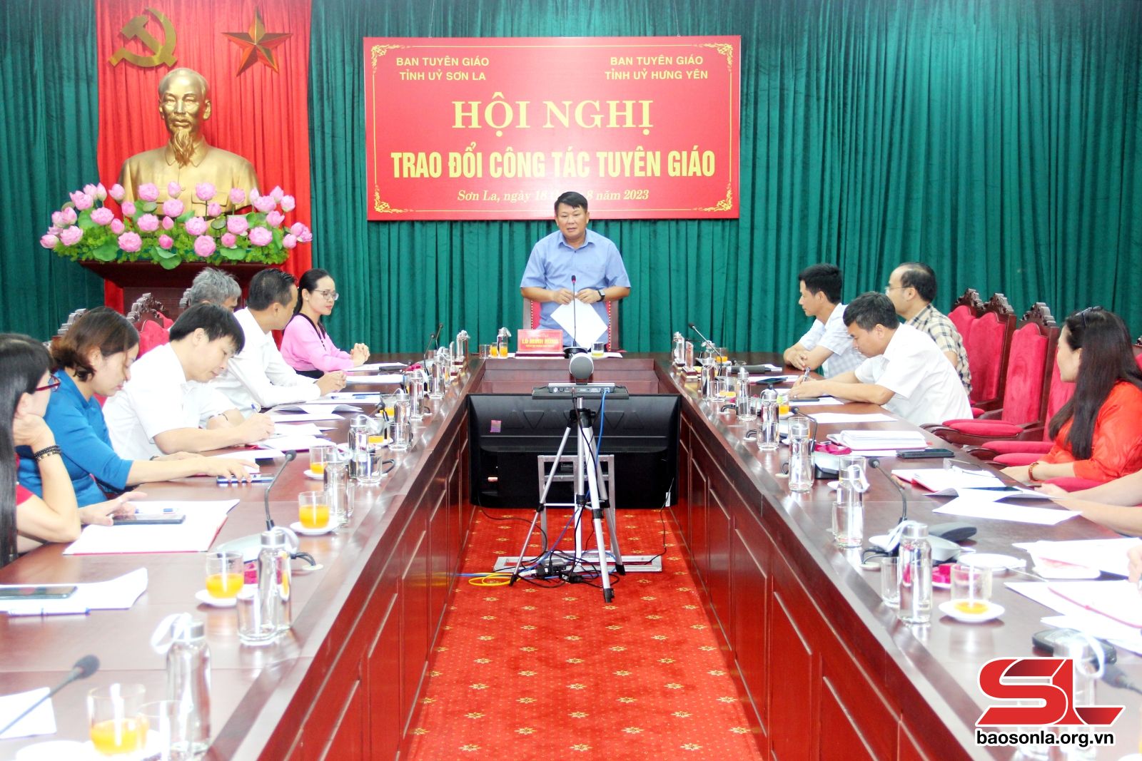Thực hiện Biên bản ghi nhớ của Ban Thường vụ Tỉnh ủy Sơn La và Ban Thường vụ Tỉnh ủy Hưng Yên về hợp tác toàn diện giữa tỉnh Sơn La và Hưng Yên giai đoạn 2022-2025, ngày 15/7/2022, Ban Tuyên giáo hai tỉnh Sơn La và Hưng Yên tổ chức ký kết chương trình phối hợp công tác tuyên giáo giai đoạn 2022 - 2025. Sau 2 năm thực hiện chương trình phối hợp, hai đơn vị tăng cường kết nối, hợp tác, hỗ trợ, thúc đẩy công tác tuyên giáo của hai tỉnh ngày càng thực chất, hiệu quả.