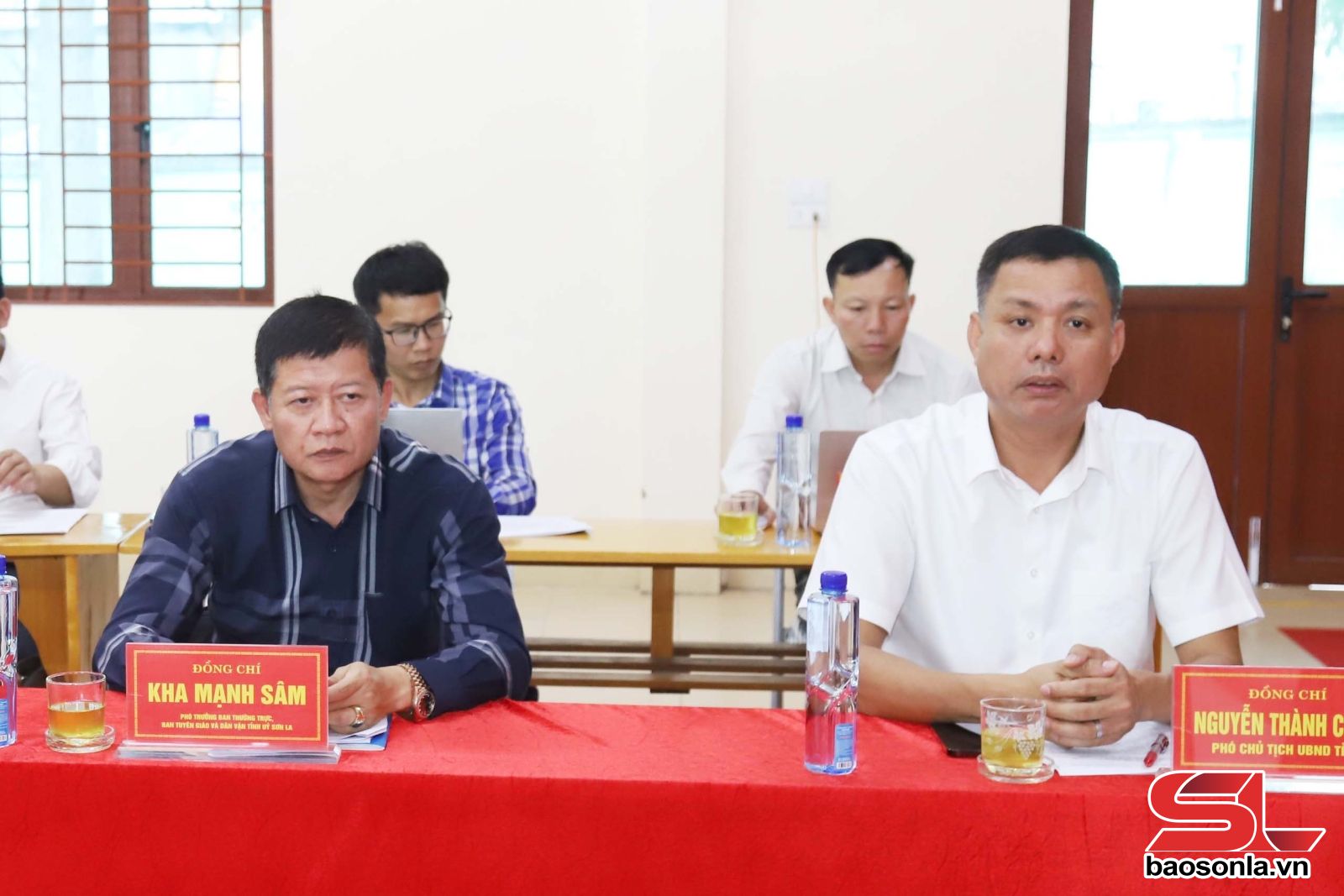 Tiếp và làm việc với đoàn, tỉnh Sơn La có đồng chí Nguyễn Thành Công, Phó Chủ tịch UBND tỉnh; lãnh đạo Ban Tuyên giáo và Dân vận Tỉnh ủy, Ủy ban MTTQ Việt Nam, các tổ chức chính trị - xã hội tỉnh, Bộ Chỉ huy Quân sự tỉnh và một số sở, ban, ngành liên quan và cán bộ, lãnh đạo xã Ngọc Chiến.