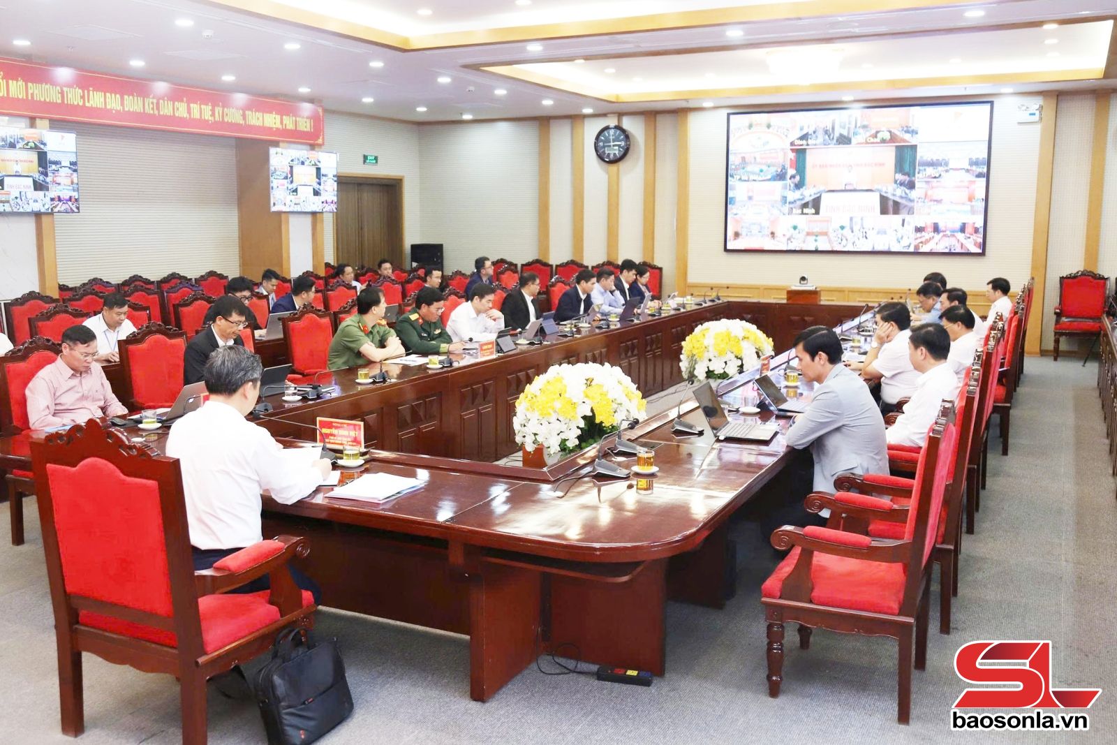 Dự hội nghị tại điểm cầu tỉnh Sơn La có các đồng chí: Nguyễn Đình Việt, Phó Bí thư Tỉnh ủy, Chủ tịch UBND tỉnh; Đào Tài Tuệ, Ủy viên Ban Thường vụ Tỉnh ủy, Giám đốc Sở Xây dựng; lãnh đạo các sở, ban, ngành của tỉnh.